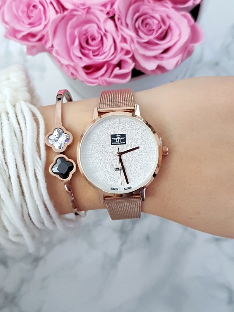 Mówią że „Diamenty to najlepsi przyjaciele kobiety” - w tym stwierdzeniu z pewnością tkwi ziarno prawdy ale my nie do końca się z nim zgadzamy. Równie gustownym dodatkiem kobiecej garderoby jest dobrze dobrany zegarek. Zegarek Elis marki Michael John to gratka dla Pań ceniących sobie gustowny wygląd w każdej sytuacji. Piękna bransoleta typu mesh, z prostą i szybką regulacją oraz koperta wykonana ze stali chirurgicznej. Wypukłe szkiełko w połączeniu z pięknymi złotymi wskazówkami oraz sygnowanym logo producenta na tarczy to gwarancja jakości i oryginalności. Każdy zegarek zapakowany jest w ozdobne pudełko.
