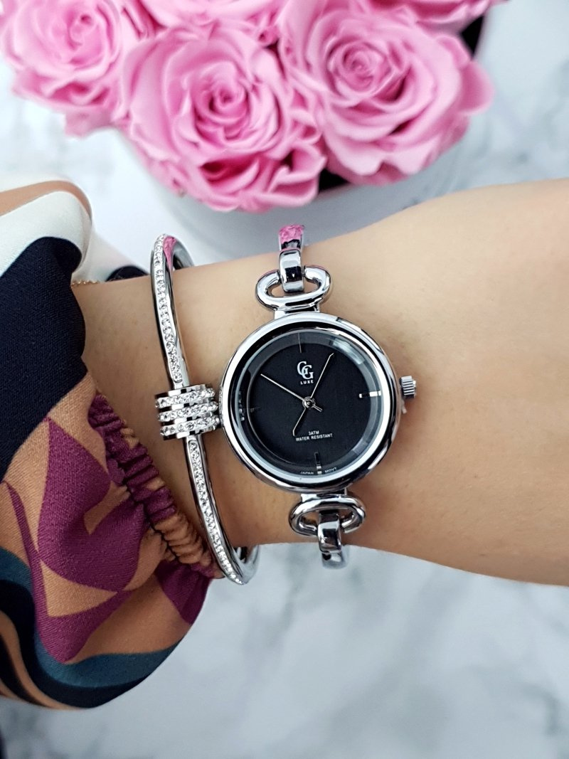 Dopełnieniem naszych stylizacji nie są tylko buty czy torebka, ważny jest również zegarek. Marka GG Luxe, zachwyca nas wysoką jakością wykonania oraz modnym designem. Unikatowy model Mega z piękną, stalową bransoletą oraz niezwykle stylową kopertą to idealny wybór dla eleganckich kobiet. Pasuje zarówno do codziennych stylizacji jak i tych bardziej eleganckich. Tarcza z delikatnym logiem marki. Nie czekaj dłużej, spraw sobie trochę elegancji w najwyższej jakości. Każdy zegarek zapakowany jest w ozdobne pudełko.