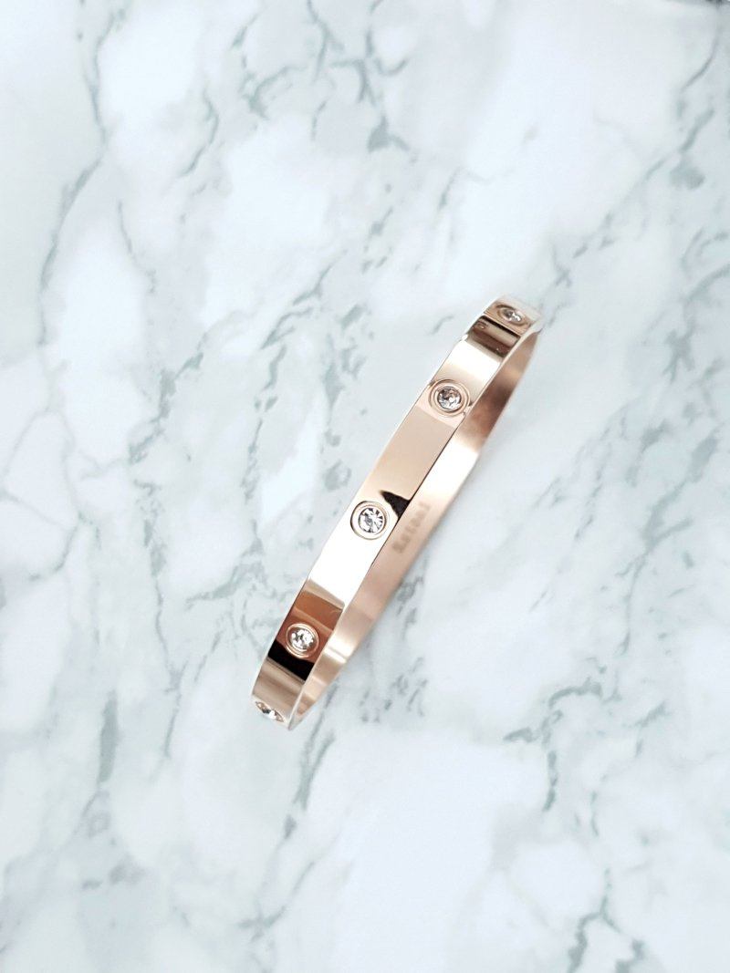 Damska Bransoleta Stalowa Z Cyrkoniami Różowe Złoto 6mm Valerii