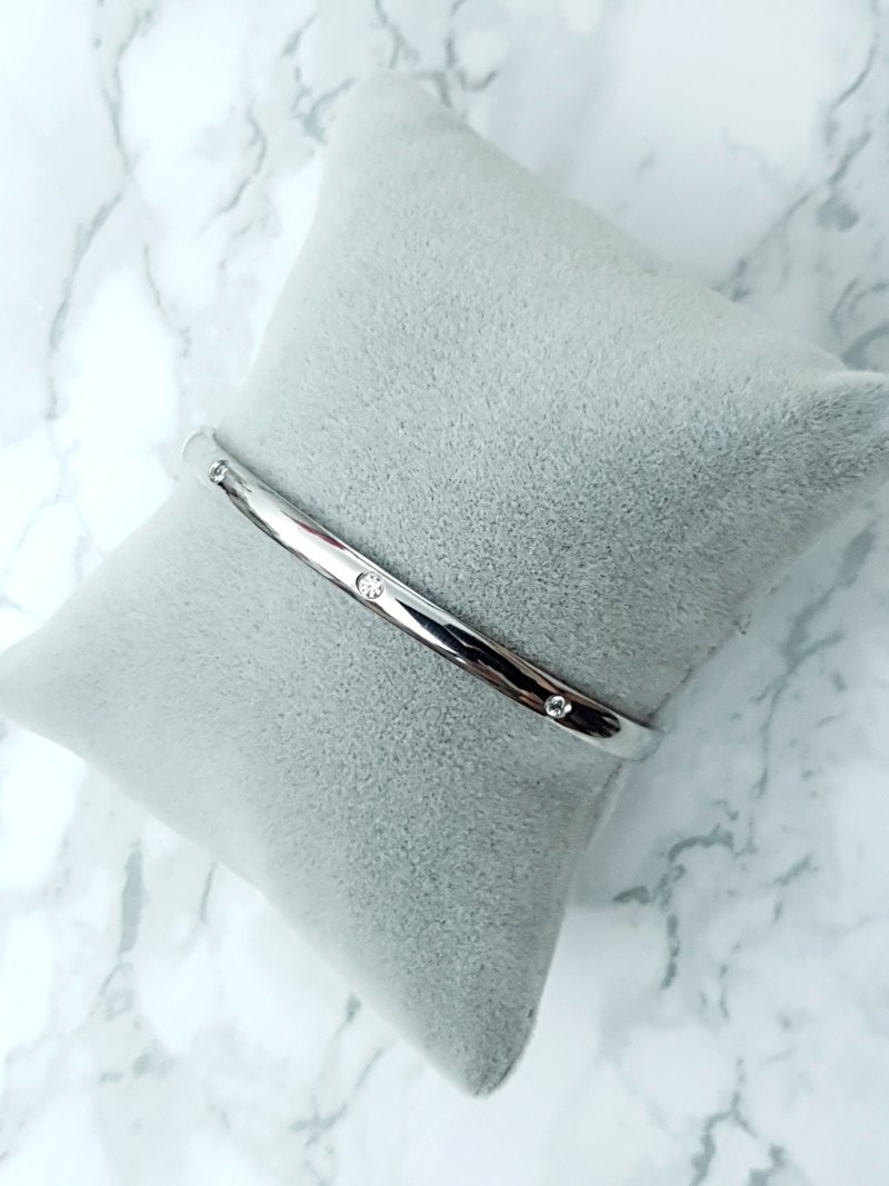 My kobiety kochamy błyskotki. Każda stylizacja potrzebuje dodatków, a nawet te najmniejsze są bardzo ważne. Mowa tu o pięknej biżuterii, która podkreśli to co najlepsze. Delikatnie zaokrąglona bransoletka wykonana ze stali nierdzewnej z pięknie błyszczącymi się cyrkoniami. Bransoletka rozpina się, przez co jej zakładanie będzie jeszcze łatwiejsze. Sprawdź całą naszą kolekcję biżuterii i wybierz swój ulubiony dodatek.