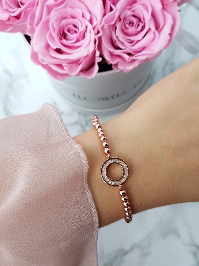 Damska Bransoleta Z Koralików Kółko Różowe Złoto Atria