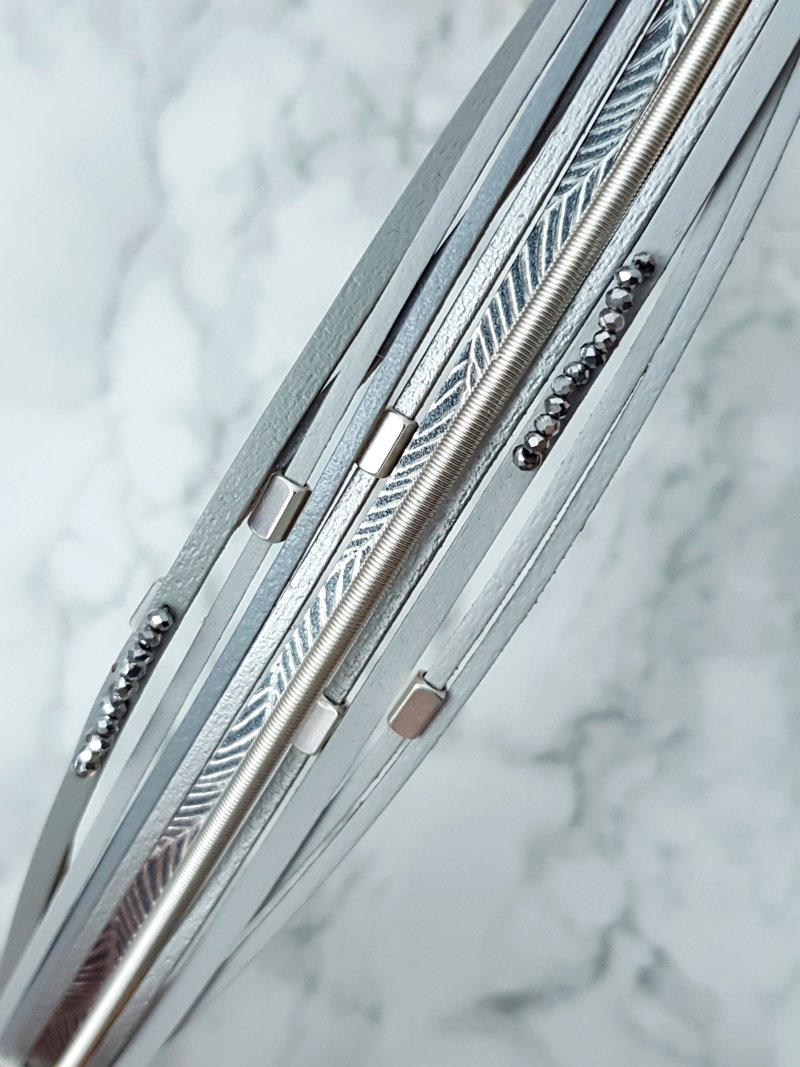 My kobiety kochamy błyskotki. Każda stylizacja potrzebuje dodatków, a nawet te najmniejsze są bardzo ważne. Mowa tu o pięknej biżuterii, która podkreśli to co najlepsze. Wspaniała rzemieniowa bransoletka z zapinaniem na magnes. Model został wykonany z wysokiej jakości skóry ekologicznej. Modny wzór na który każda z nas zwróci uwagę. Sprawdź całą naszą kolekcję biżuterii i wybierz swój ulubiony dodatek.