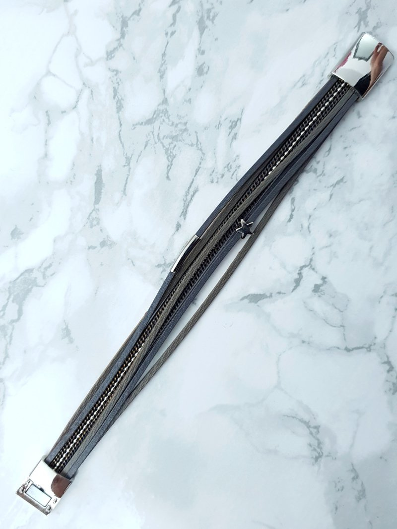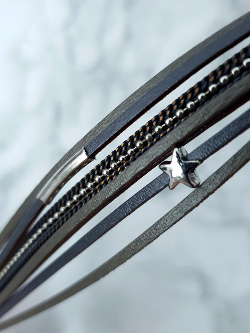Damska Bransoleta Rzemień Szara Gwiazdka Michiko