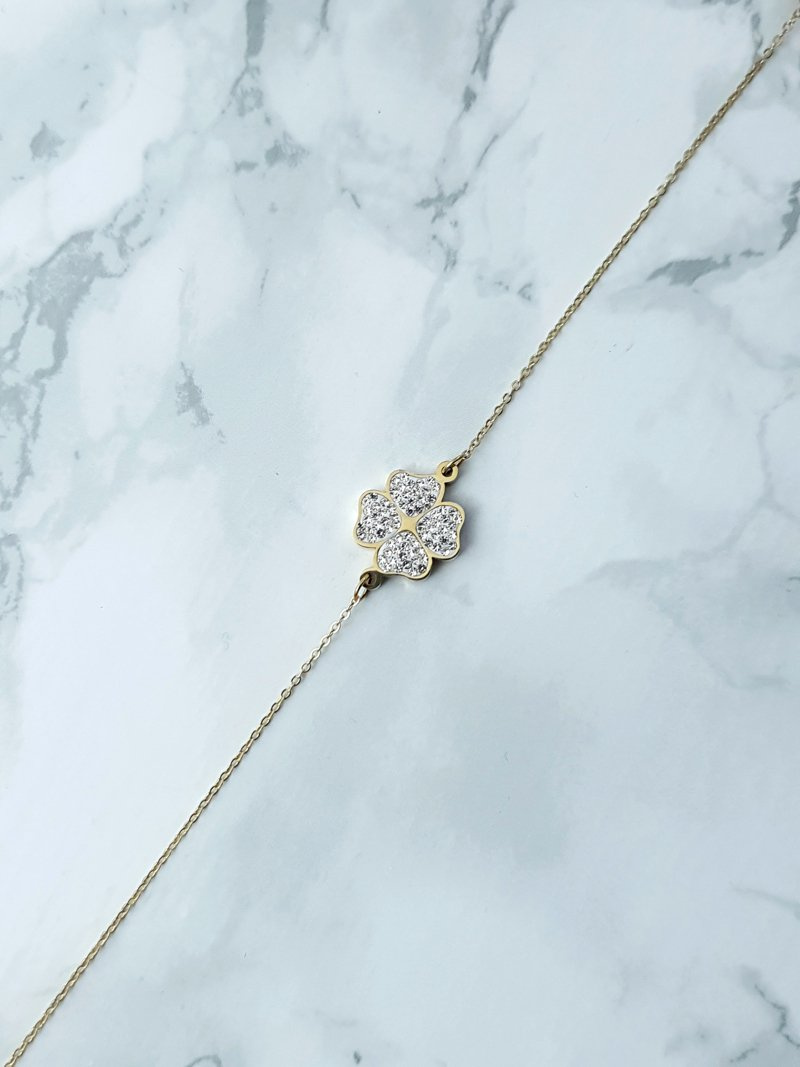 Damska Bransoleta Na Łańcuszku Koniczynka Złota Selene