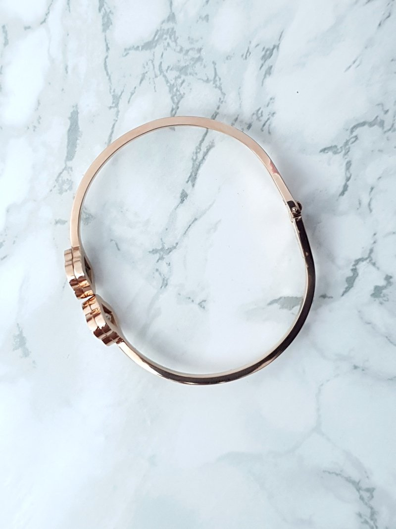 Damska Bransoleta Stalowa Z Dwoma Cyrkoniami Różowe Złoto Beluci