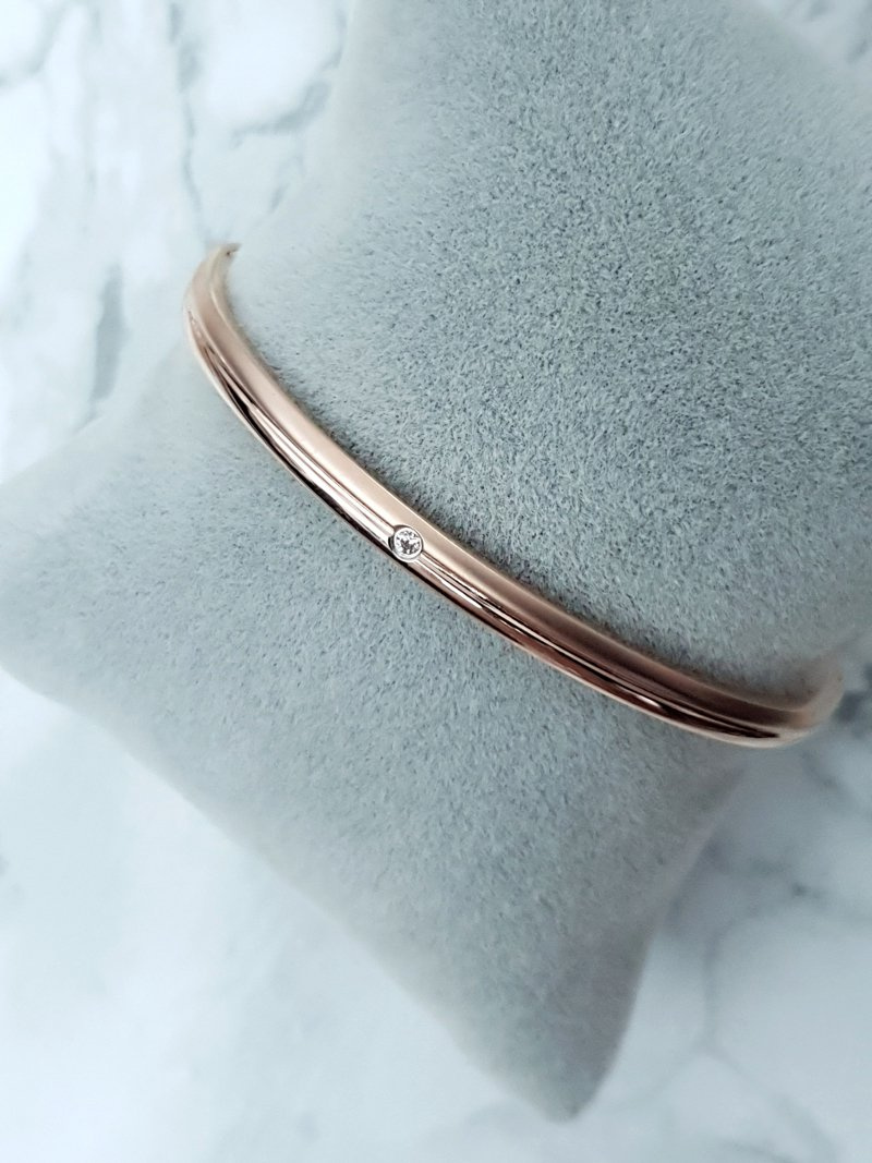 Damska Bransoleta Stalowa Z Cyrkonią Różowe Złoto Kimi