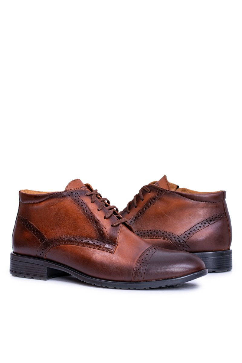Męskie Botki Ocieplane Polskie Skórzane Trzewiki Koniak Columbs