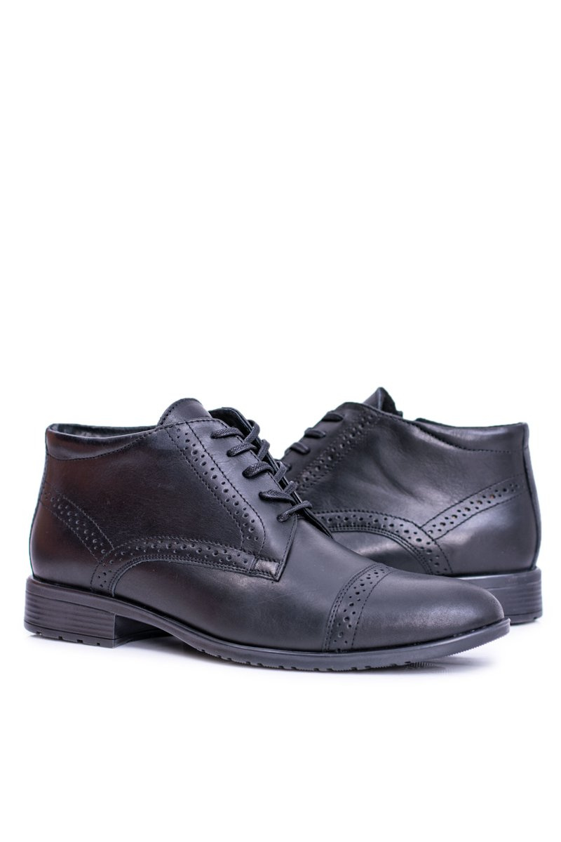 Męskie Botki Ocieplane Polskie Skórzane Trzewiki Czarne Columbs