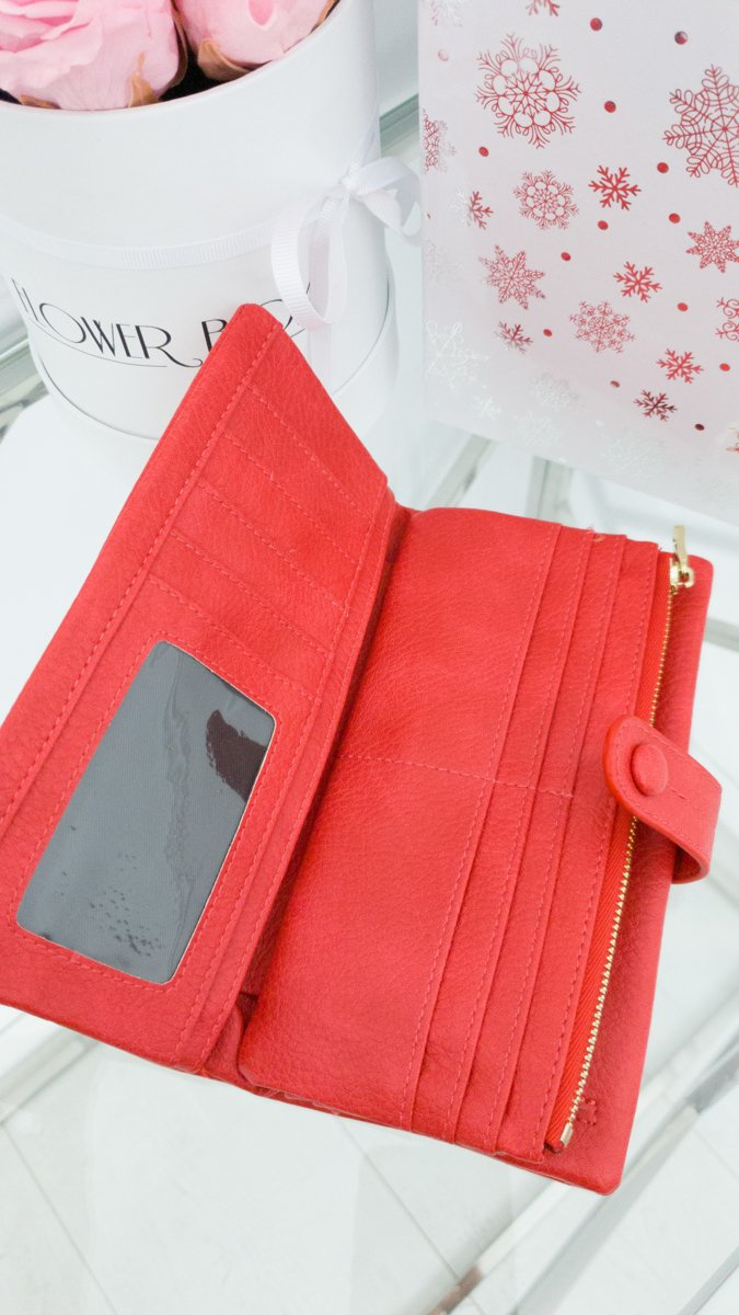 Przedstawiamy piękne portfele dla eleganckich Pań, dostępne w kilku cudownych kolorach. Produkty te charakteryzuje wyjątkowa prostota i elegancja. Wykonywane są przy użyciu najwyższej klasy materiałów. Staranne i piękne wykończenie każdego portfela oddaje niesamowitą dbałość o detale oraz modowy gust. Portfel posiada zapinanie na zatrzask. Wewnątrz znajdują się trzy kieszonki zapinane na zamek oraz masa mniejszych przegródek.