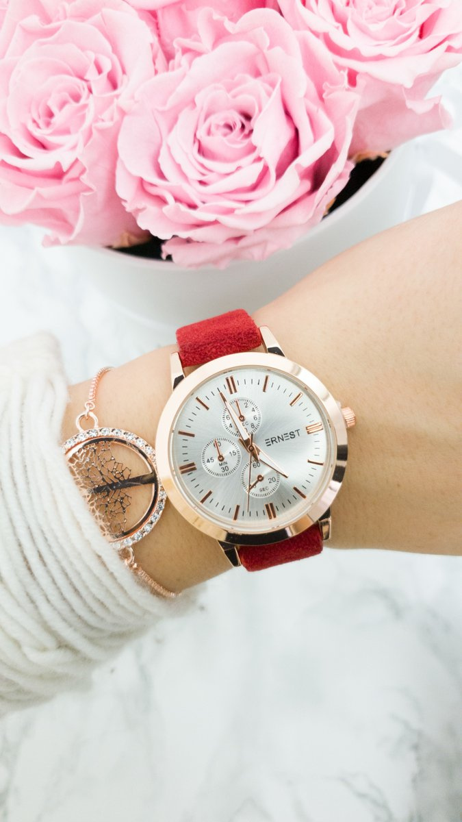 Damski Zegarek Ernest Darsi Bordowy Zamsz
