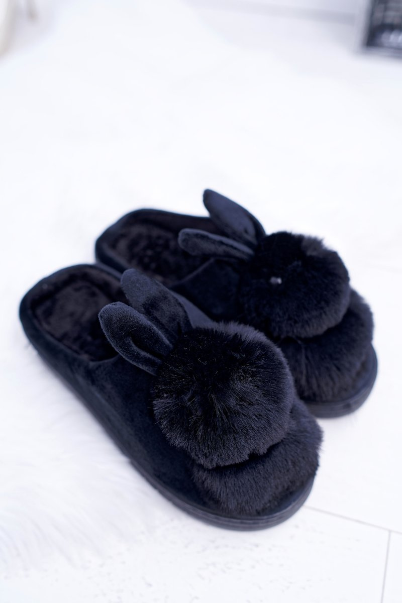 Papcie Damskie Klasyczne Z Królikiem Czarne Howi