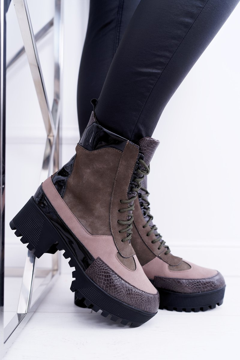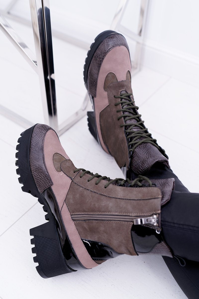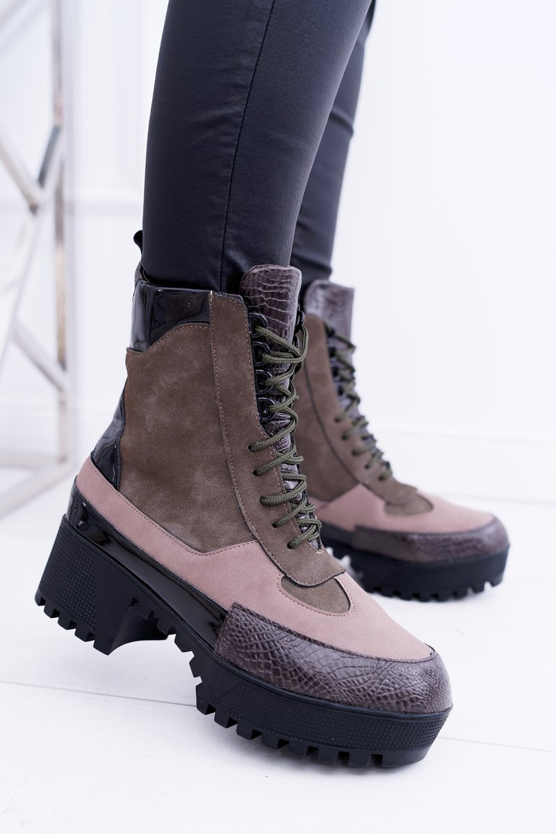Damskie Botki Płaskie Lu Boo Ciepłe Zielone Desert