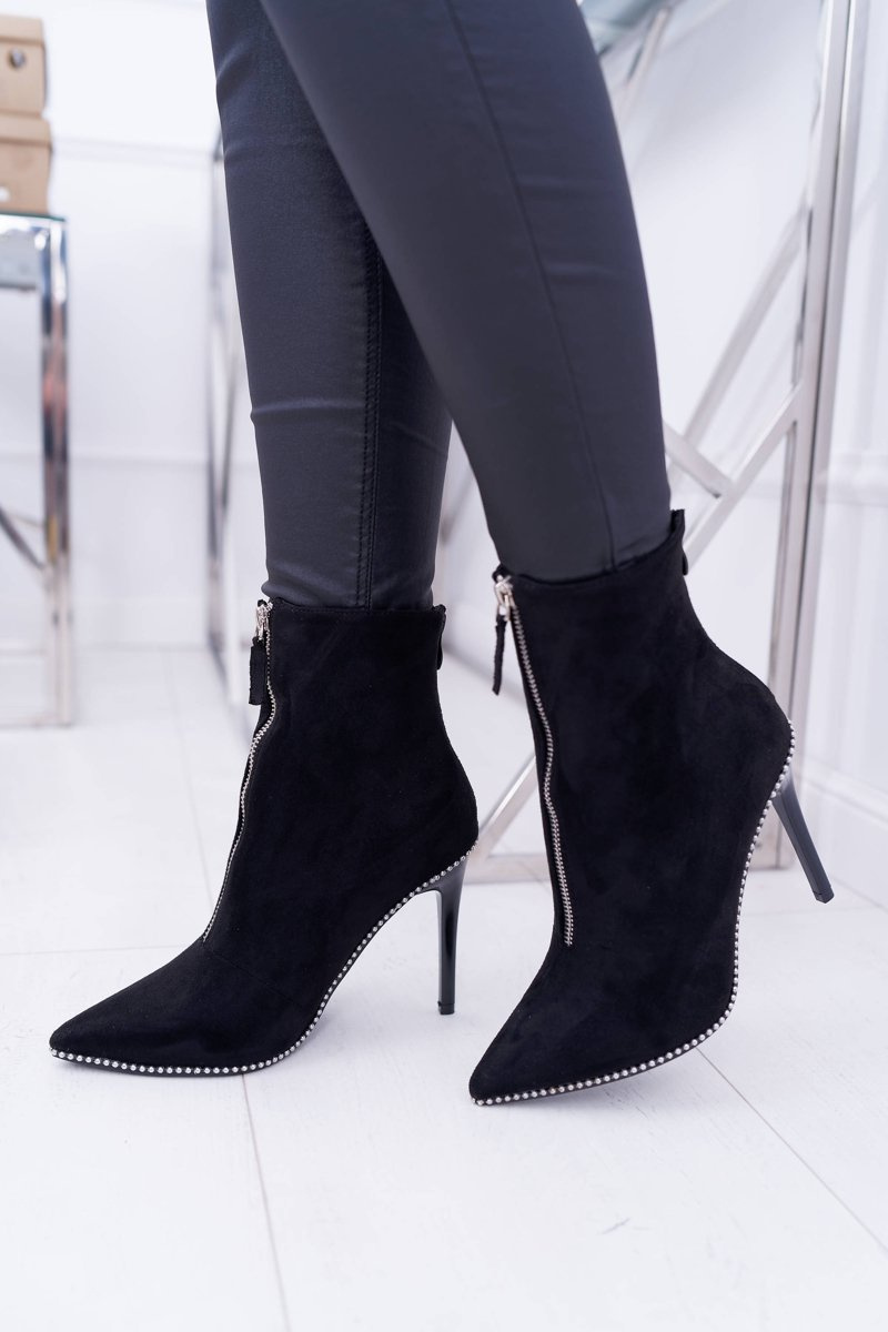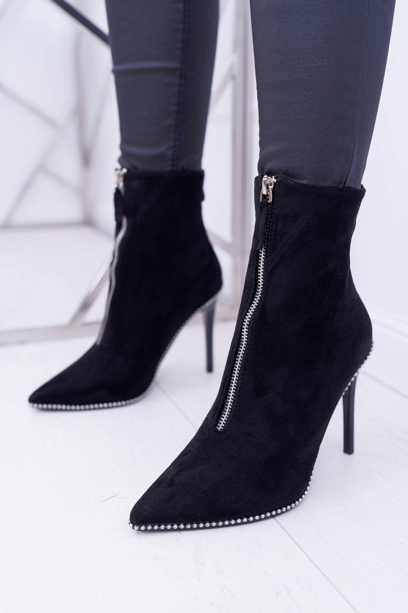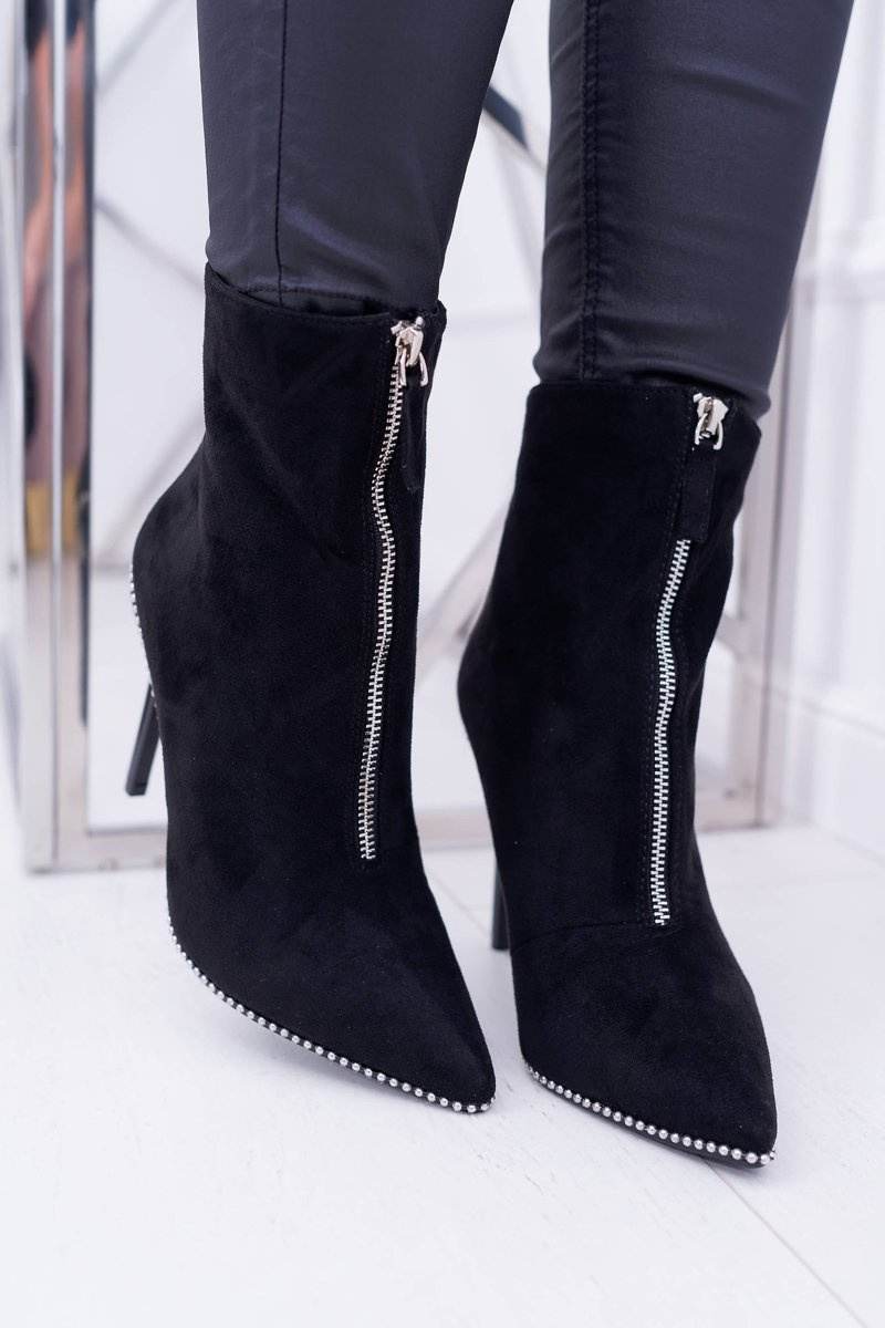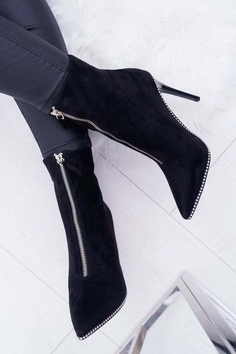 Damskie Botki Na Obcasie Lu Boo Dwa Suwaki Zamszowe Czarne Suzy