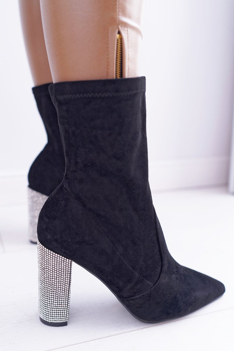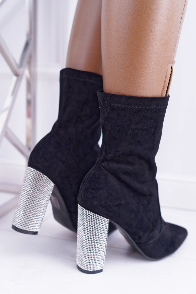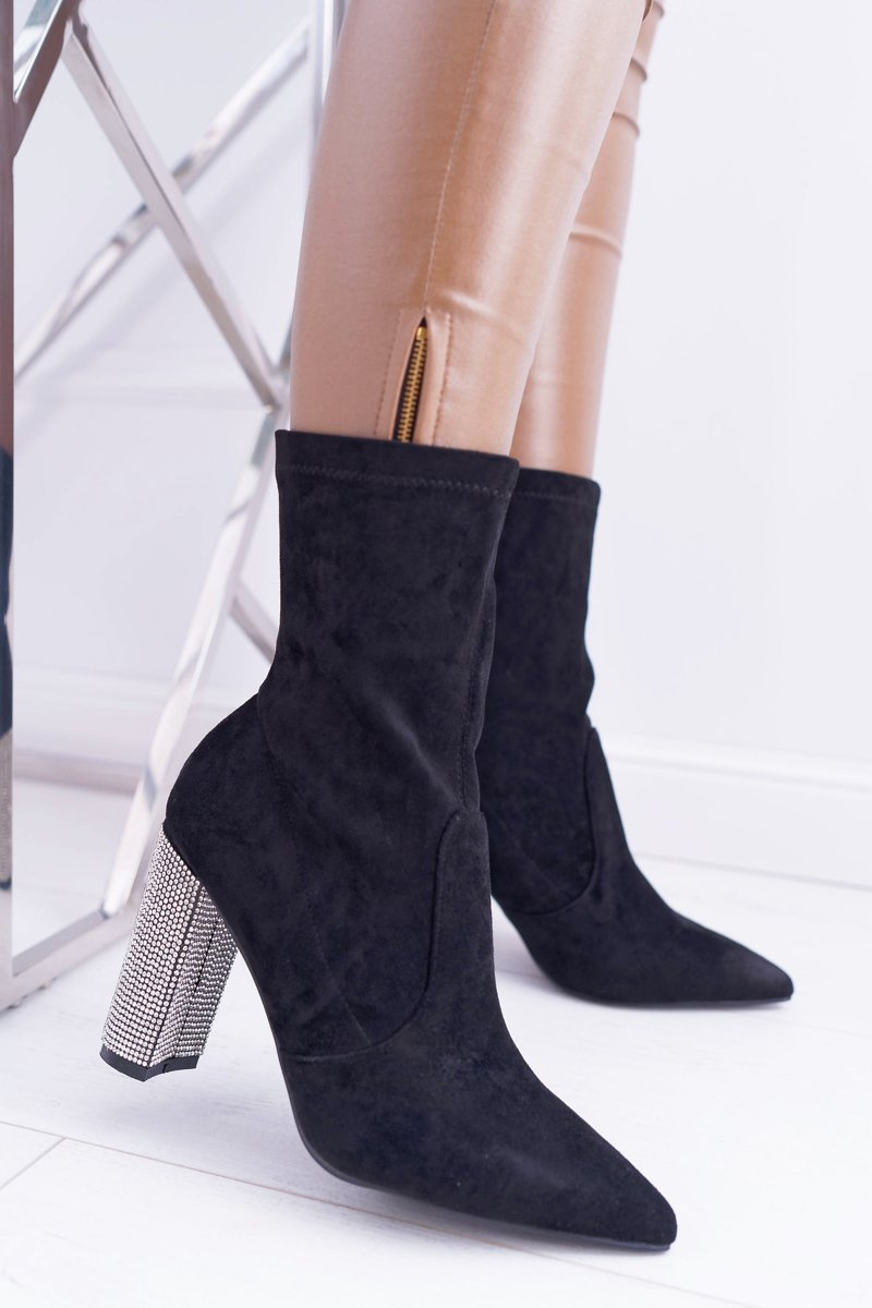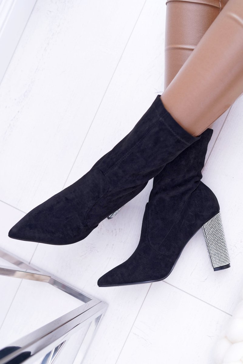 Damskie Botki Czarne Na Słupku Zamszowe Hendo