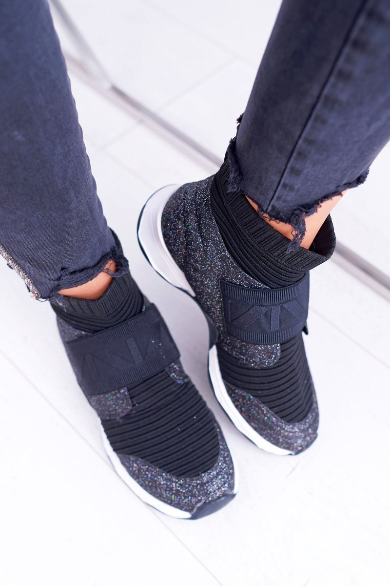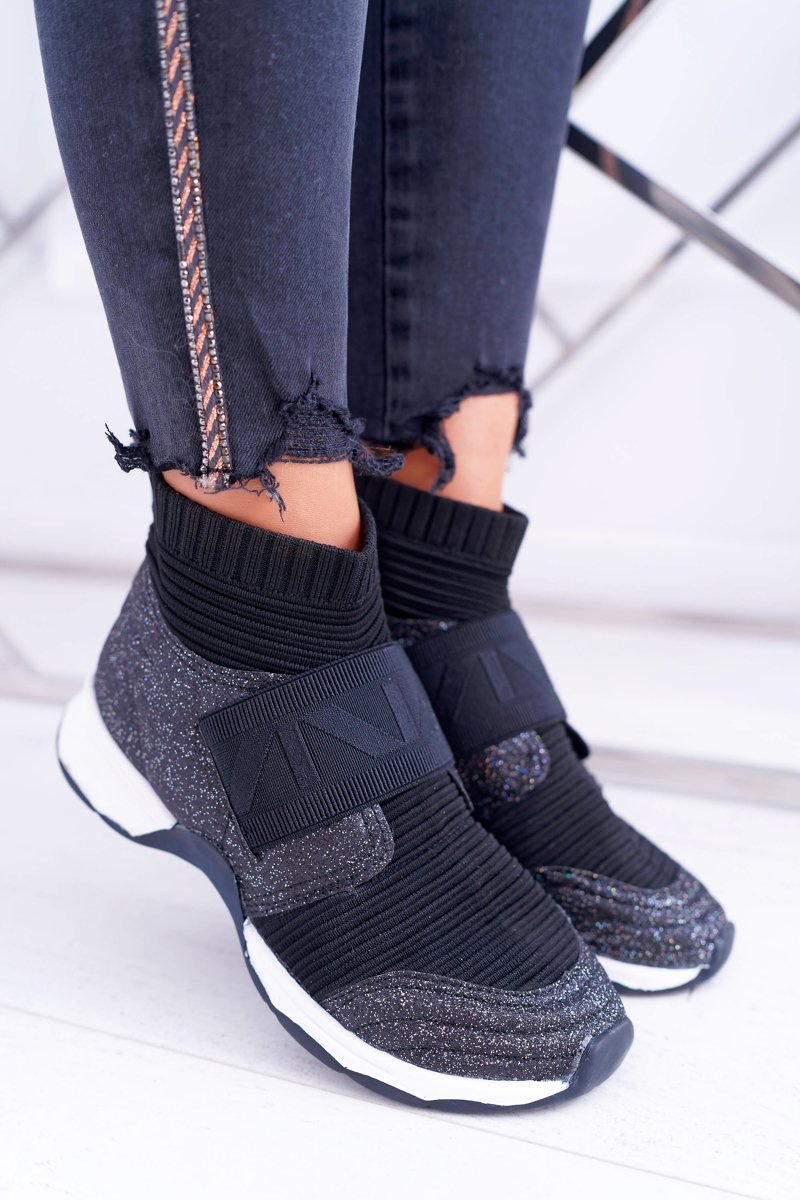 Obuwie Sportowe Damskie Lu Boo Ze Skarpetą Czarny Brokat Phantom