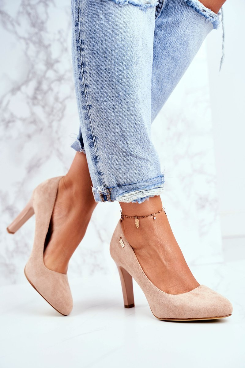 Czółenka Damskie Na Słupku Zamsz Sergio Leone Beżowe Campbell