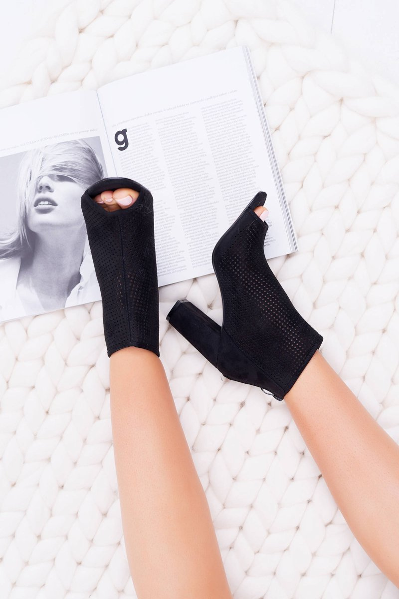 Botki Damskie Na Słupku Zamszowe Czarne Jessin