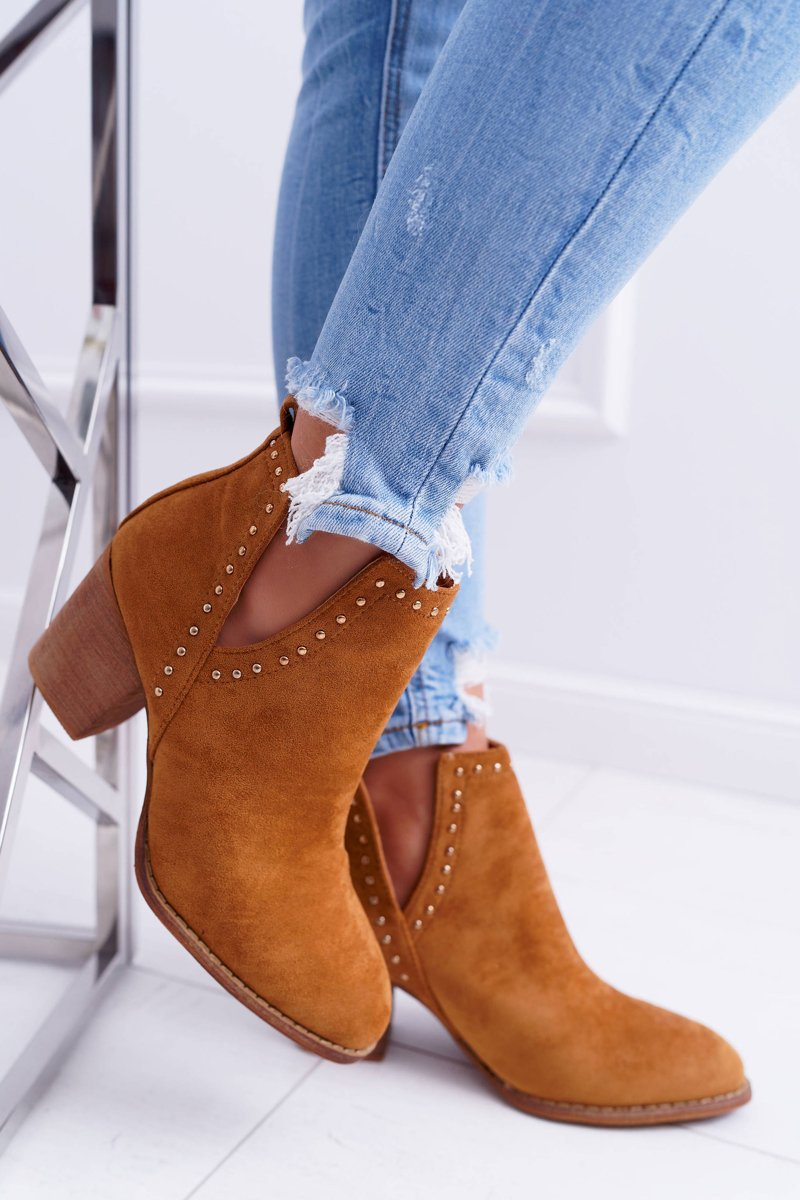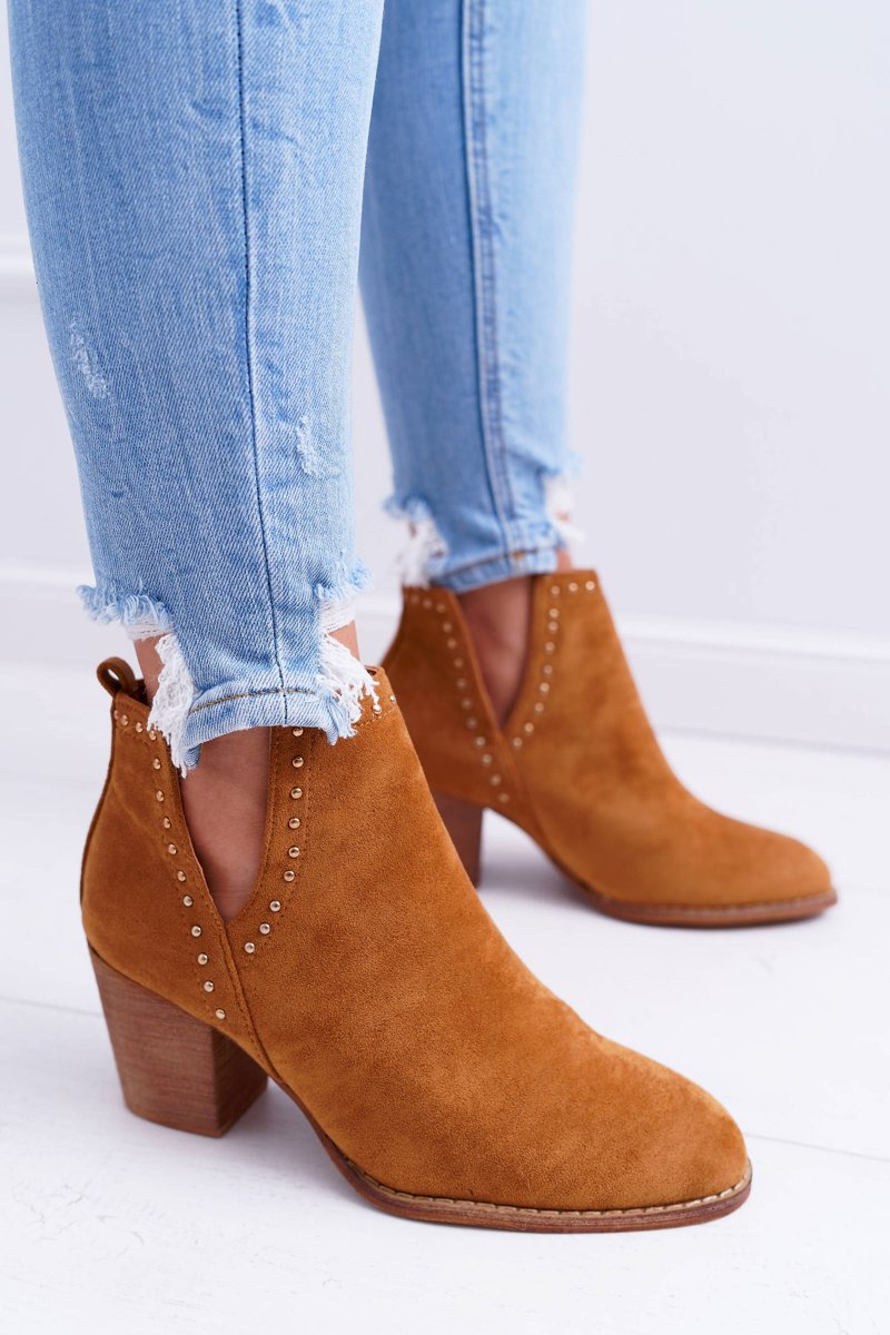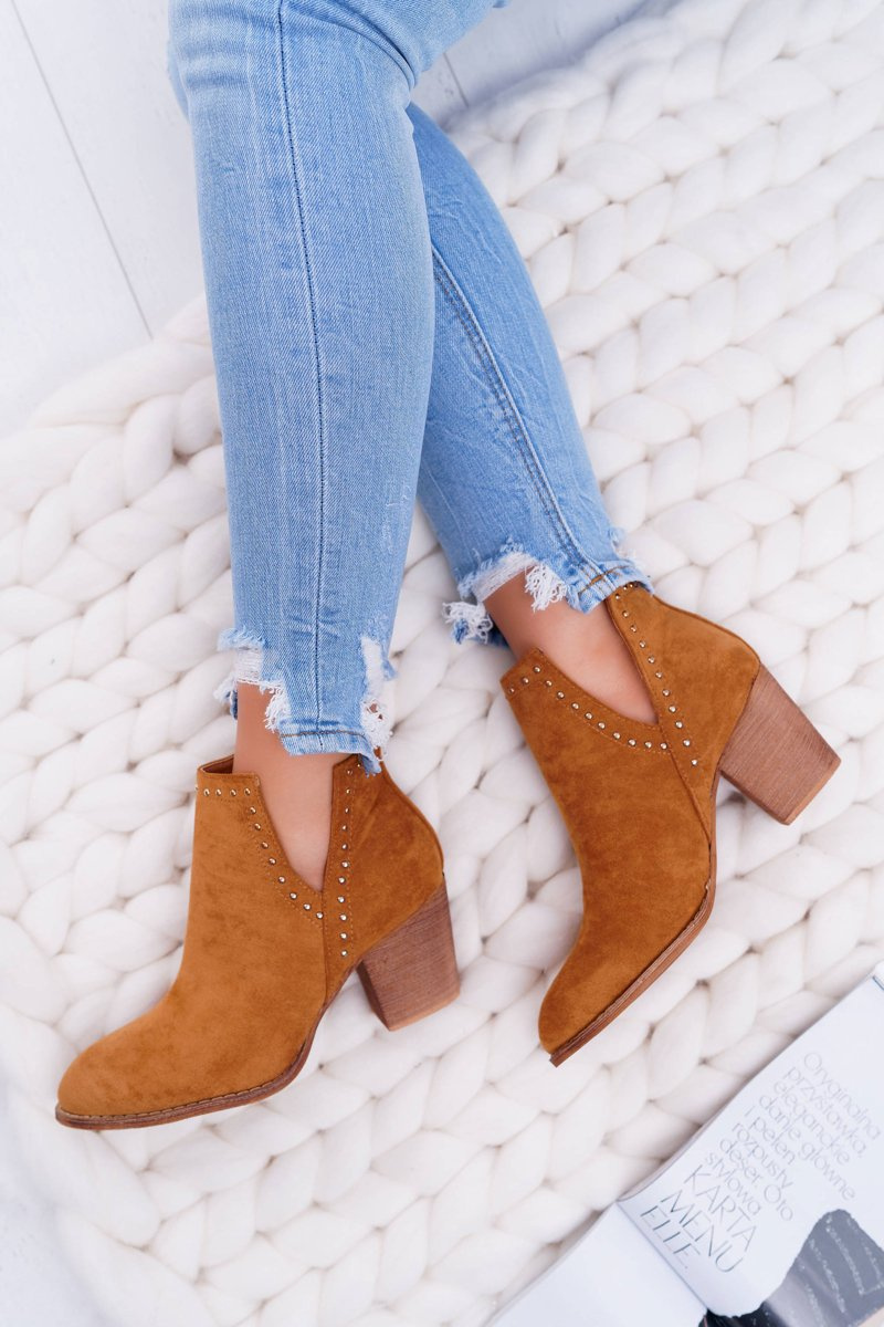 Botki Damskie Na Słupku Wsuwane z Wycięciami Camel ManiMani