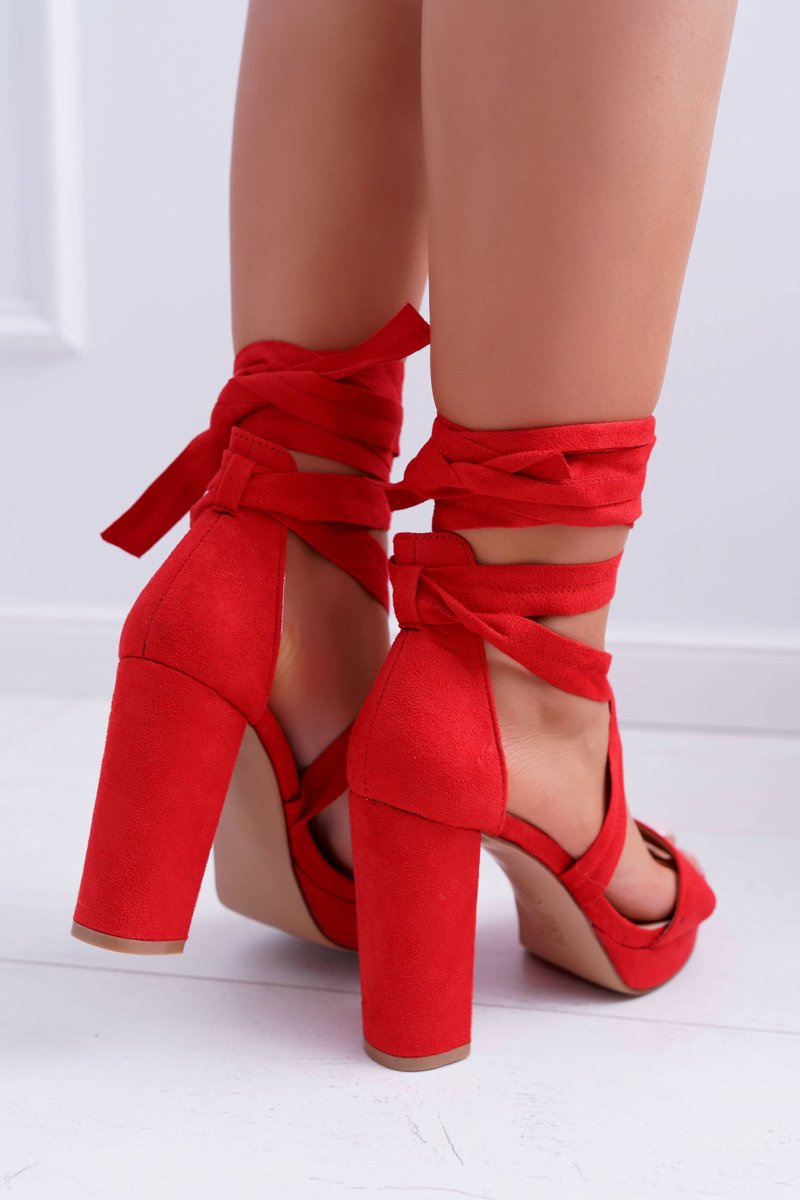 Sandały Damskie Na Słupku Platforma Wiązane Czerwone LaFiesta