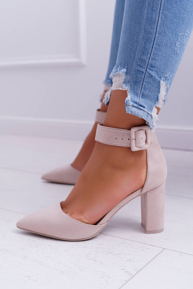 Czółenka Damskie Na Słupku W Szpic Beżowe Domine