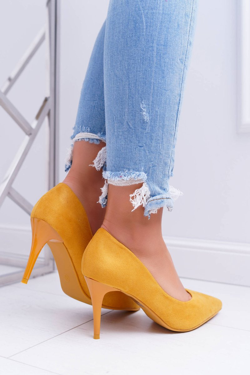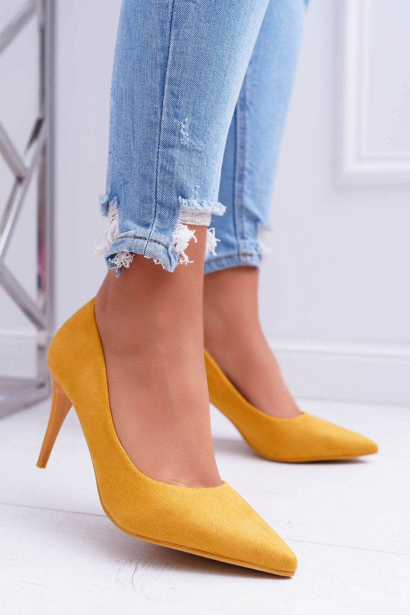Szpilki Damskie Zamszowe W Szpic Żółte Cream