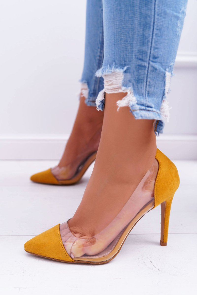 Szpilki Damskie Transparentne W Szpic Żółte Live