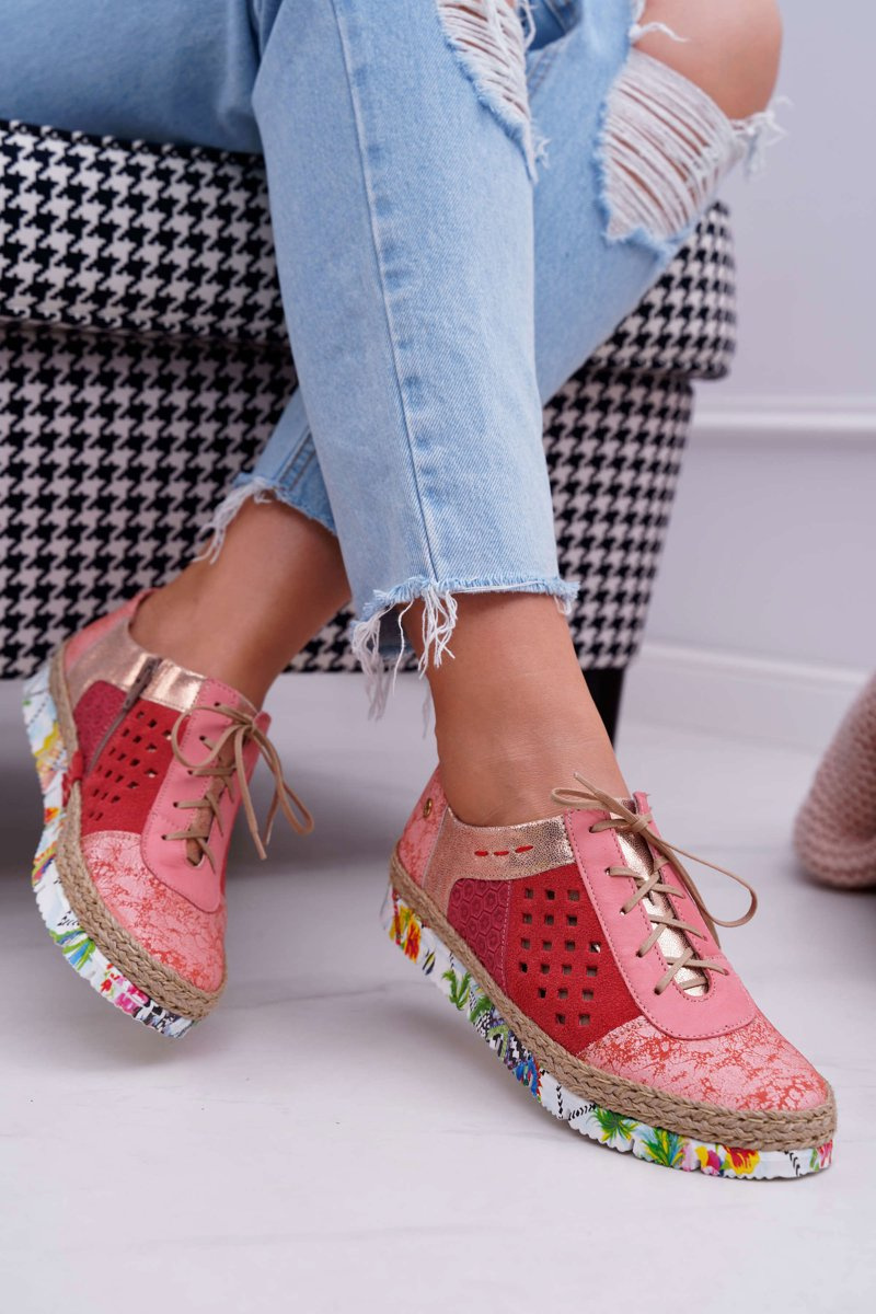 Damskie Skórzane Półbuty Maciejka Koralowe 03339-18