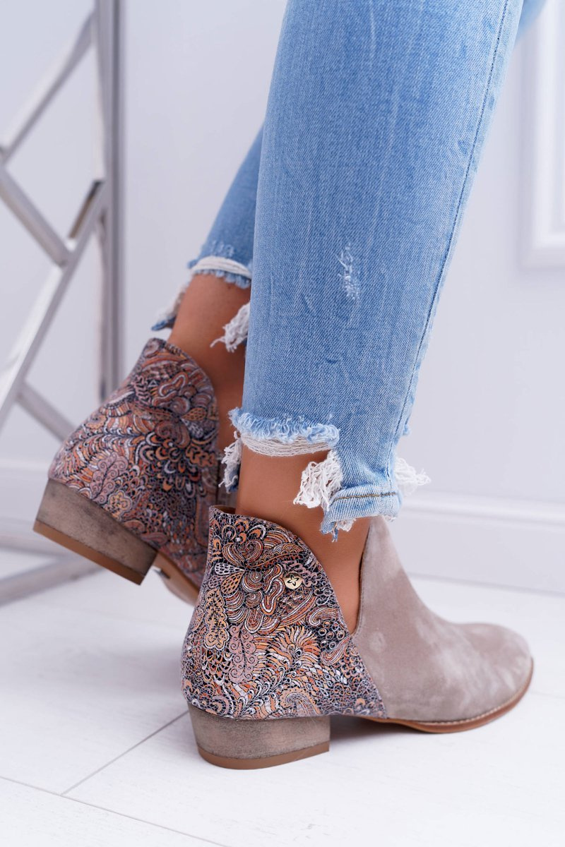 Damskie Skórzane Botki Maciejka Beżowe 04091-04