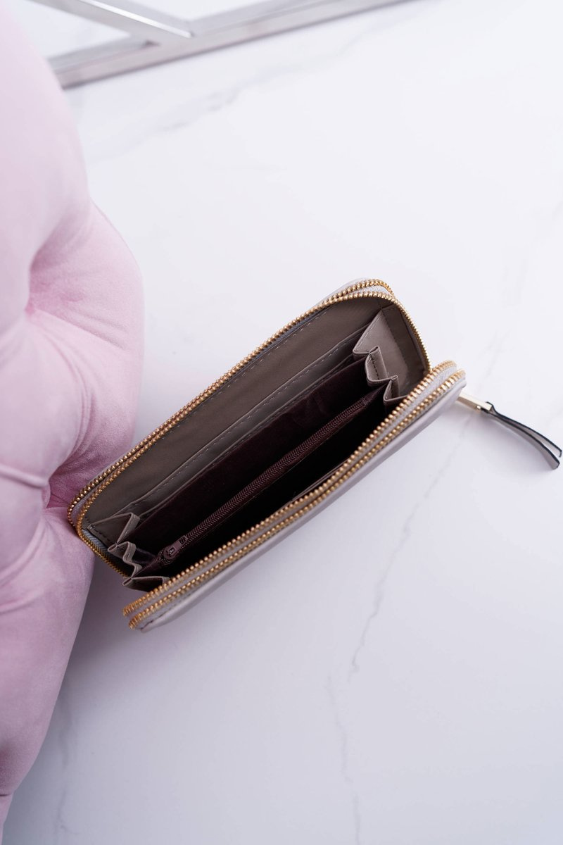 Portfel Damski Duży Szary Złoty Ozdobny Suwak