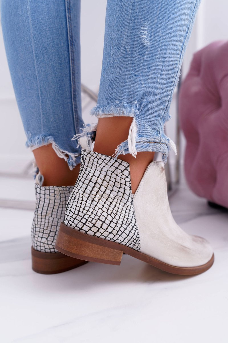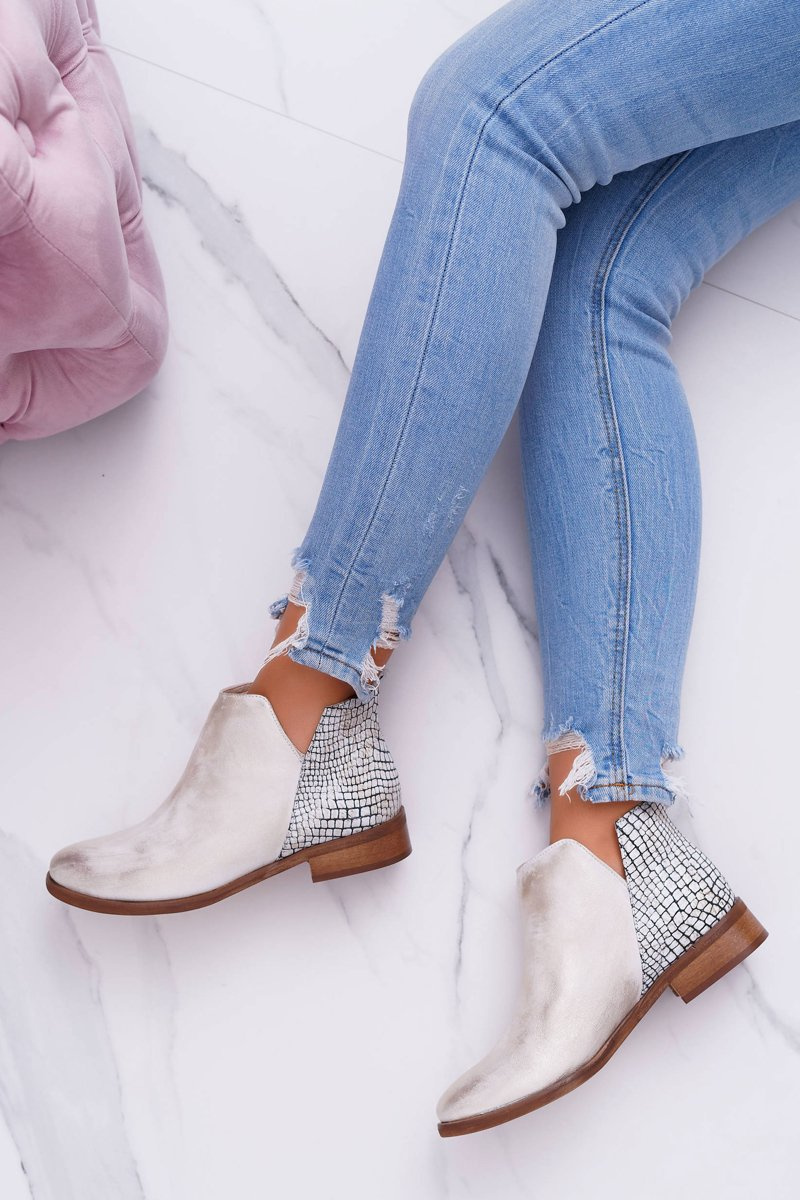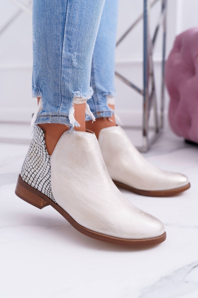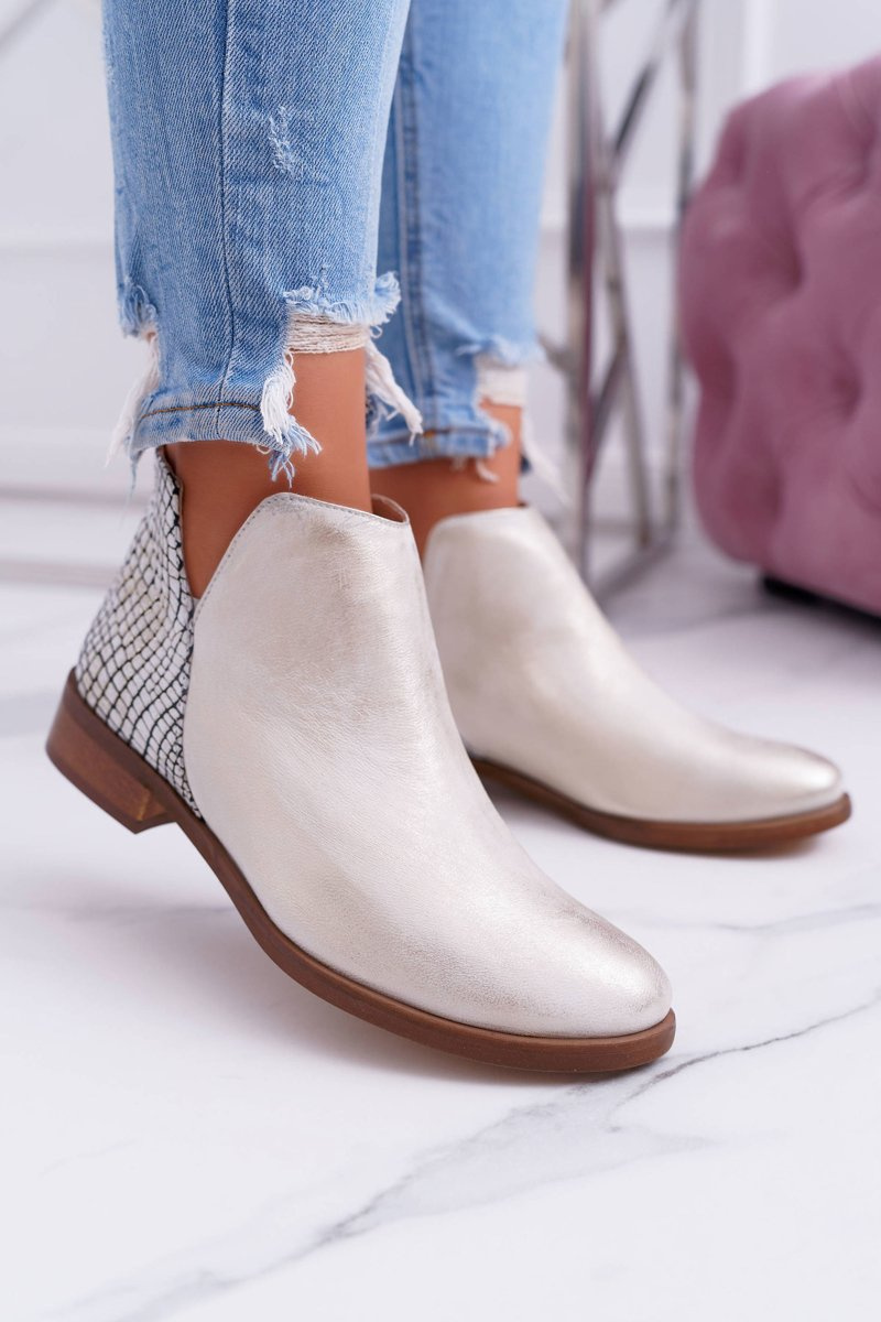 Botki Damskie Płaski Obcas Wiosenne Skórzane Przecierane Złoto Madness