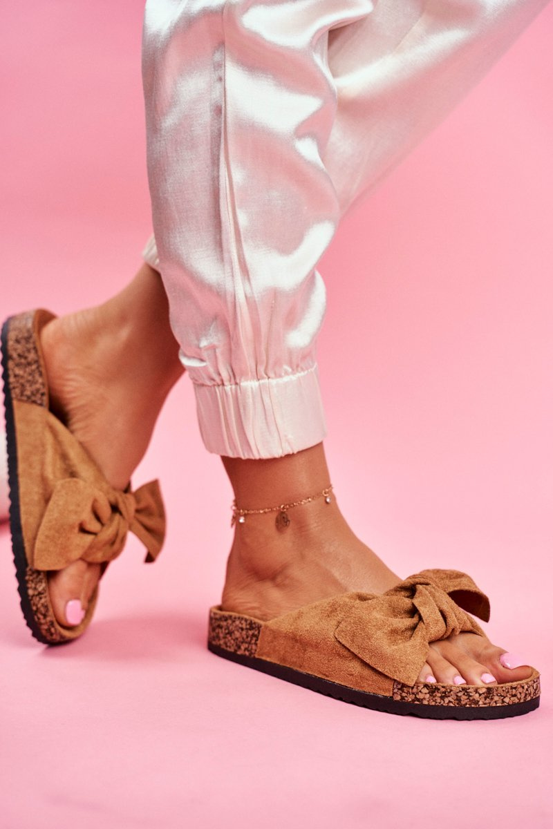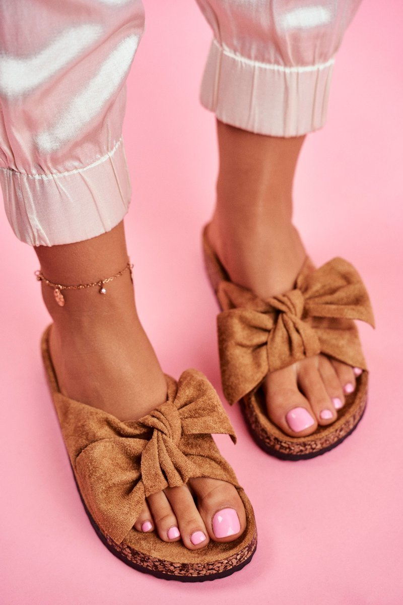Piękne klapki na korkowej podeszwie. Buty posiadają profilowaną wkładkę, która zagwarantuje maksimum komfortu. Cholewka wykonana jest z miękkiego eko zamszu przyjemnego w dotyku. Podeszwa wykonana z tworzywa sztucznego. Urocza kokarda na przodzie. Klapki sprawdzą się zarówno na co dzień do pracy czy na zakupy, ale także do domu zamiast papci. Idealne na lato! Klapki dostępne są w wielu pięknych kolorach! Przy wyborze rozmiaru prosimy sugerować się tabelą rozmiarów.