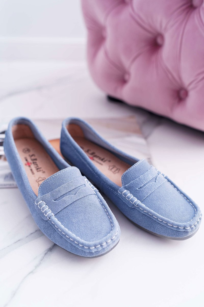 Mokasyny Damskie Skóra Zamszowa Błękitne Tenzion
