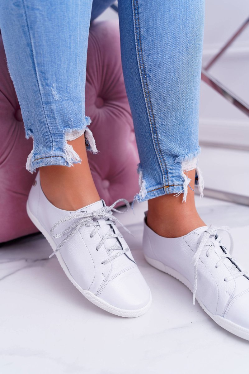 Półbuty Damskie Tenisówki Maciejka Skórzane Białe 4049A