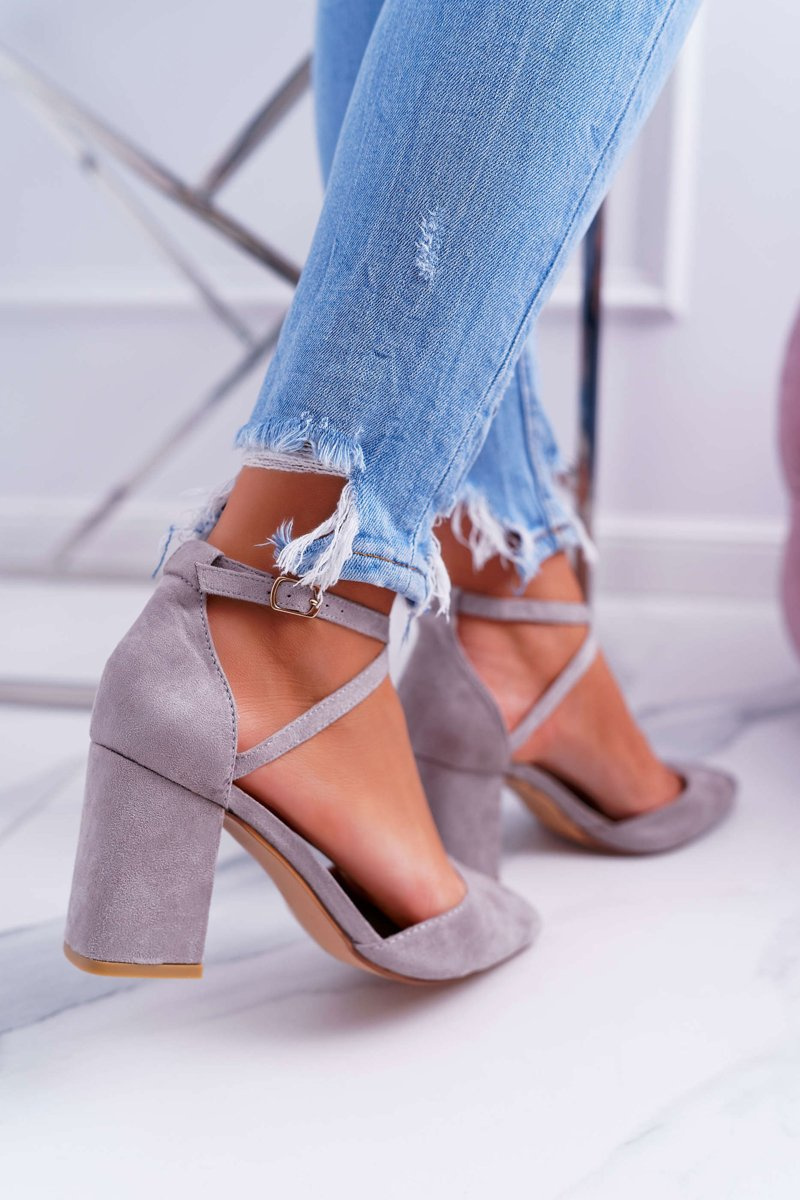 Czółenka Damskie Na Słupku W Szpic Szary Cosmo