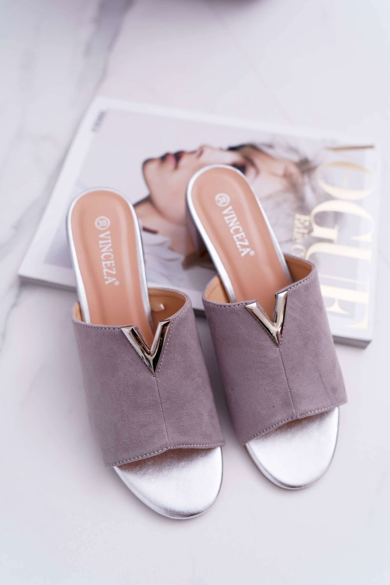 Klapki Damskie Klasyczne Eleganckie Na Klocku Szare Demea