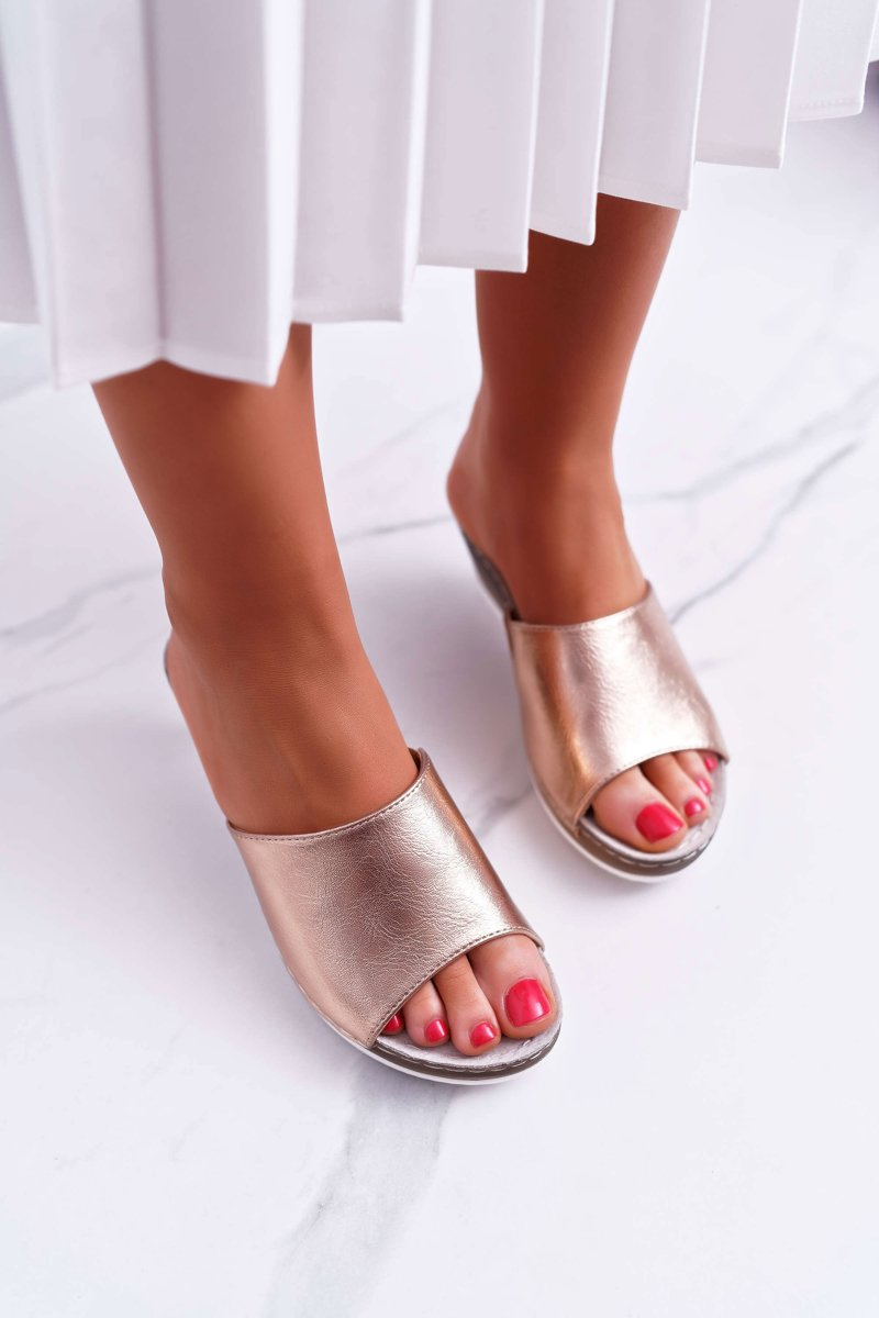 Damskie Klapki Na Koturnie Eleganckie Champagne Loca