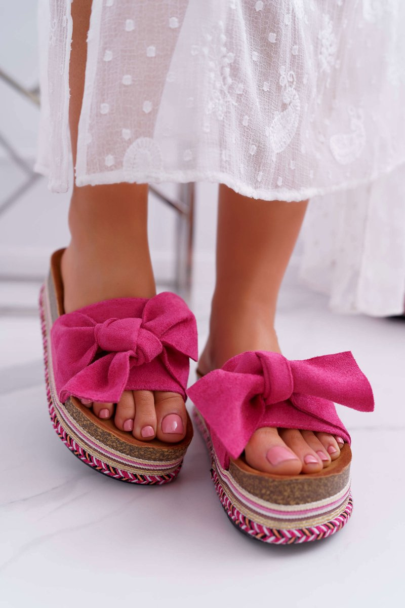 Klapki Damskie Na Platformie Z Kokardą Fuksja Chantal