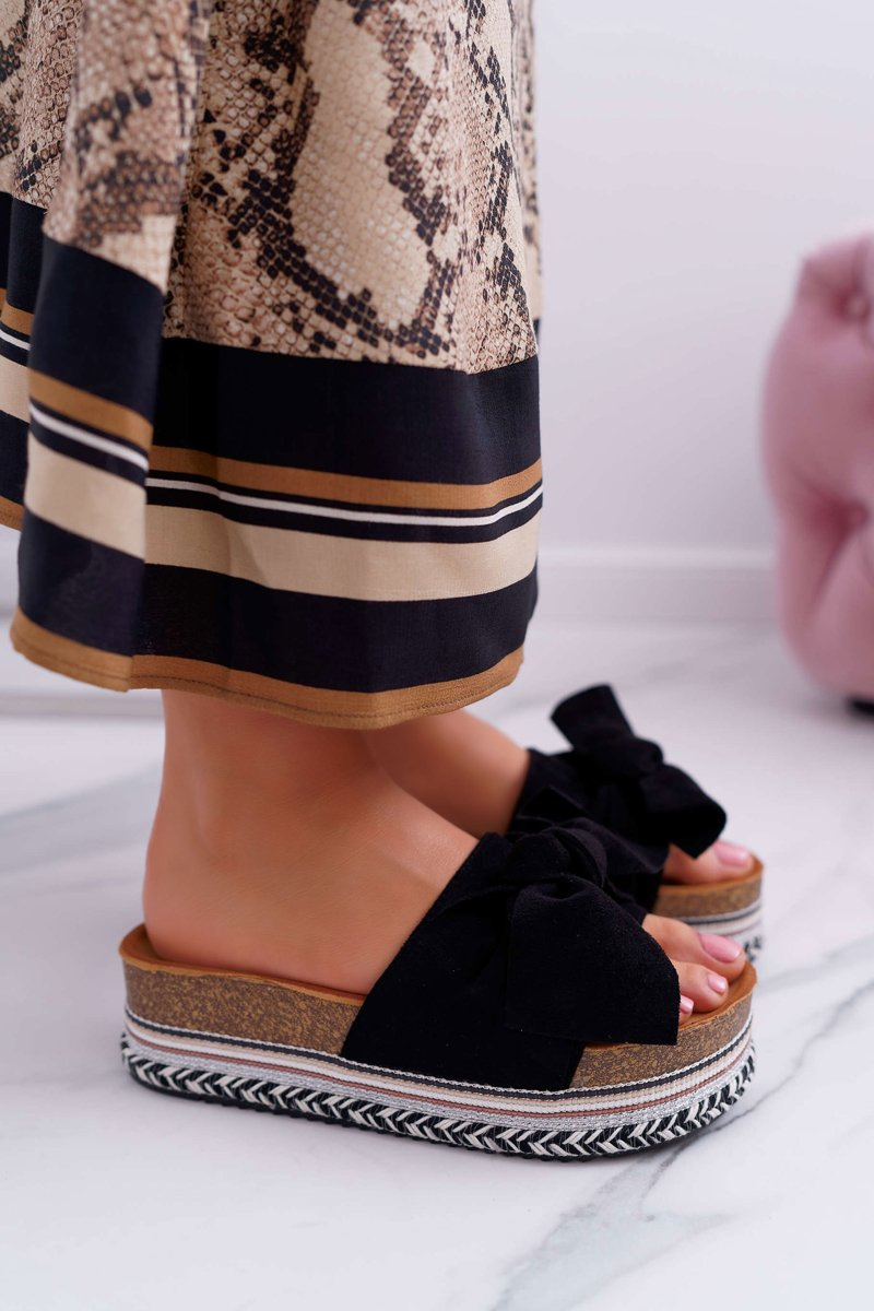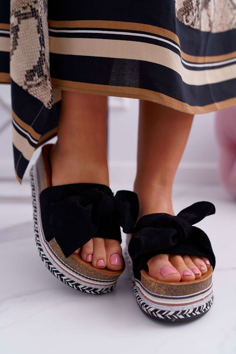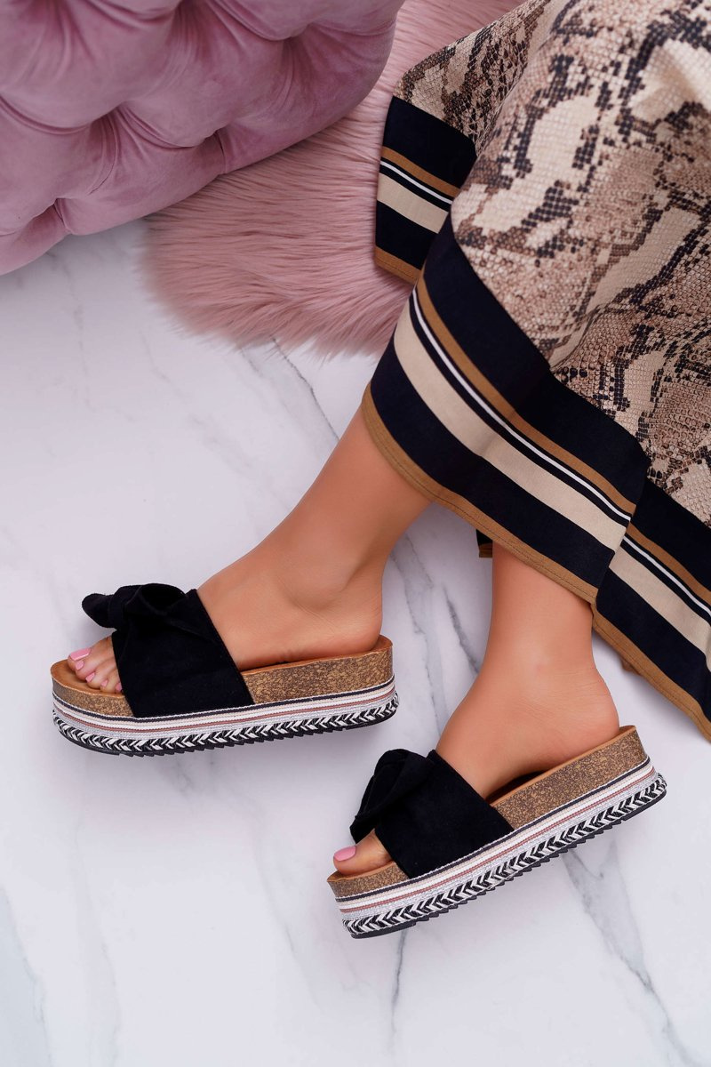 Klapki Damskie Na Platformie Z Kokardą Czarne Chantal