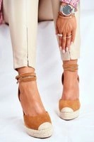 Stylowe i modne sandały na lnianej koturnie! Zdobione paskiem wiązanym wokół kostki. Model osadzony na wygodnym koturnie, który w połączeniu z miękką wkładką zapewnia nam poczucie komfortu w każdej sytuacji. Przy wyborze rozmiaru prosimy sugerować się tabelą rozmiarów.