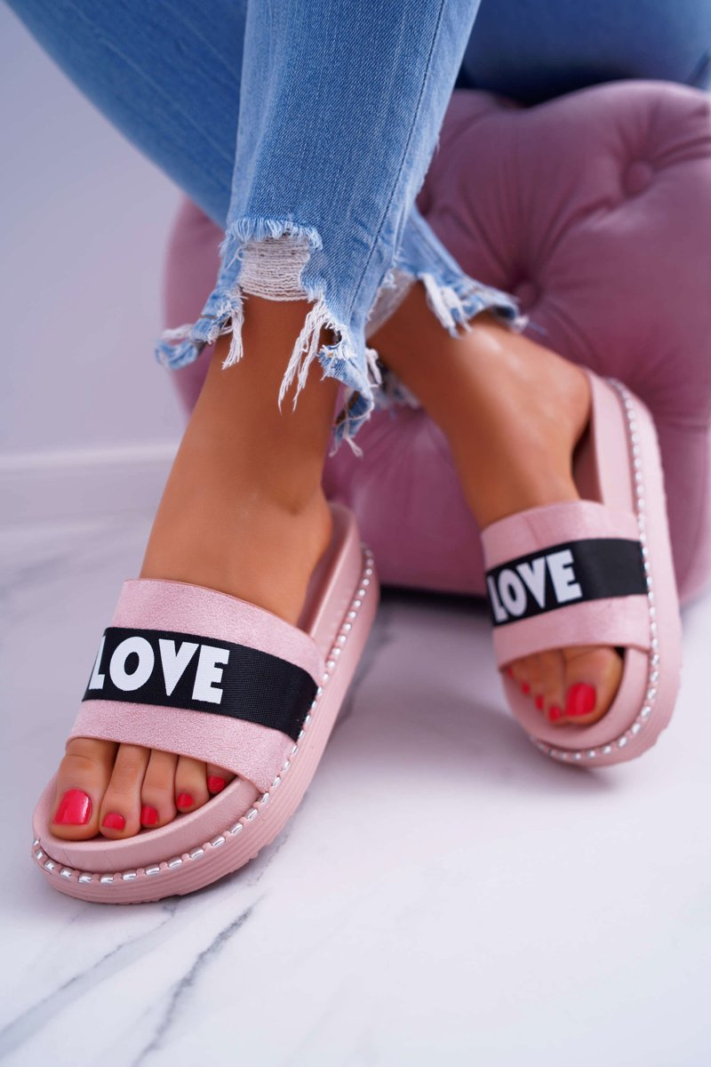 Damskie Klapki Na Platformie Z Dżetami Love Różowe MoreLove