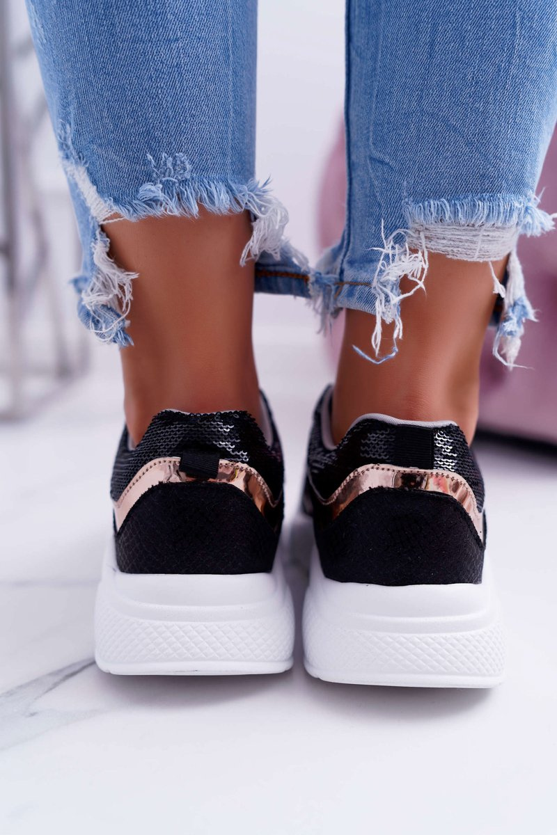 Uwielbiasz modne i ekstrawaganckie obuwie ale nie byłaś pewna czy są dla Ciebie? Ten sportowy krój na grubej podeszwie w połączeniu z modnymi czarnymi cekinami to totalny must have tego sezonu! Te buty będą pasować do każdej stylizacji, w nich będziesz wyglądać wspaniale w każdej sytuacji! Przy wyborze rozmiaru prosimy kierować się tabelą rozmiarów.