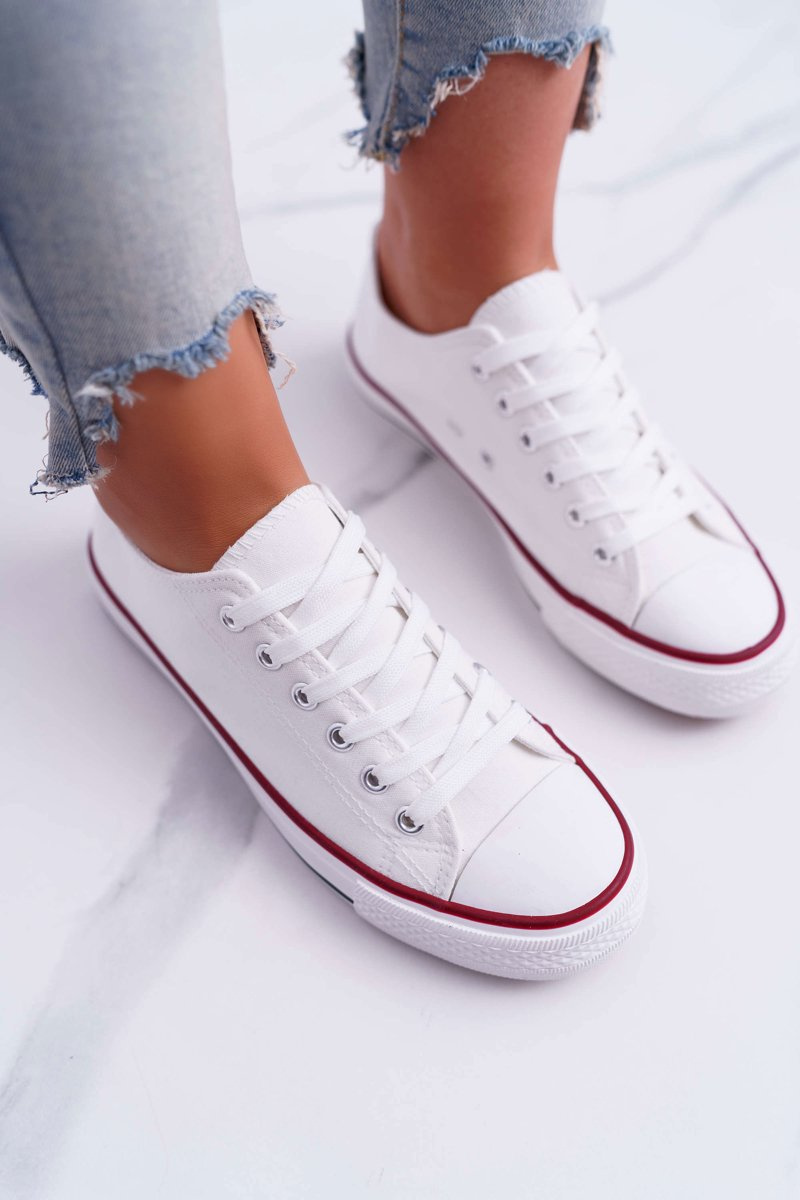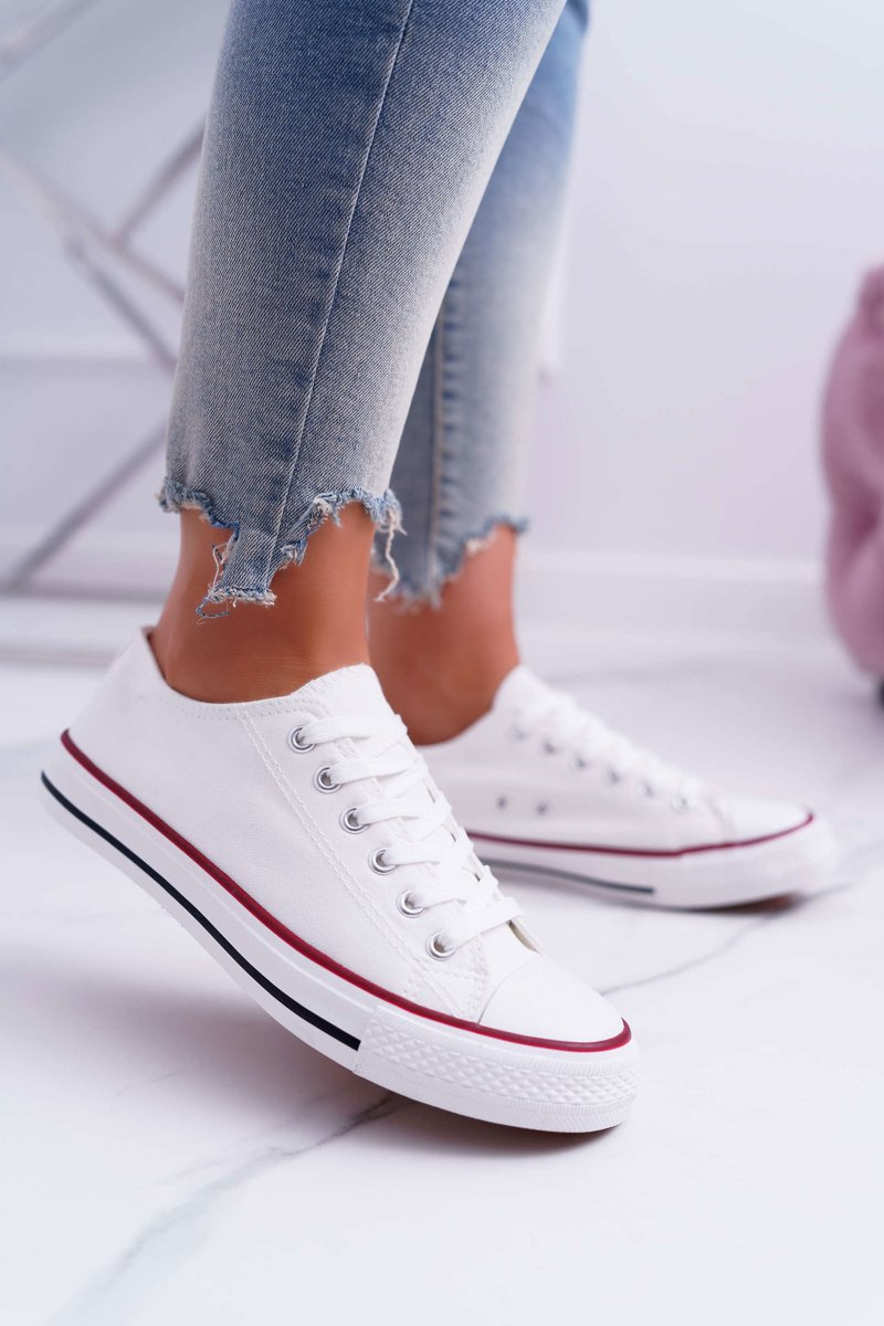 Trampki Damskie Niskie Materiałowe Białe FreeTime