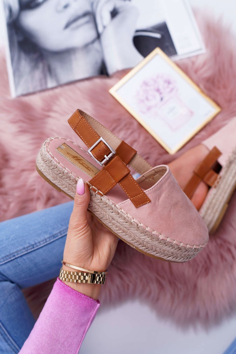 Espadryle Damskie Zamszowe Na Platformie Różowe Parteno