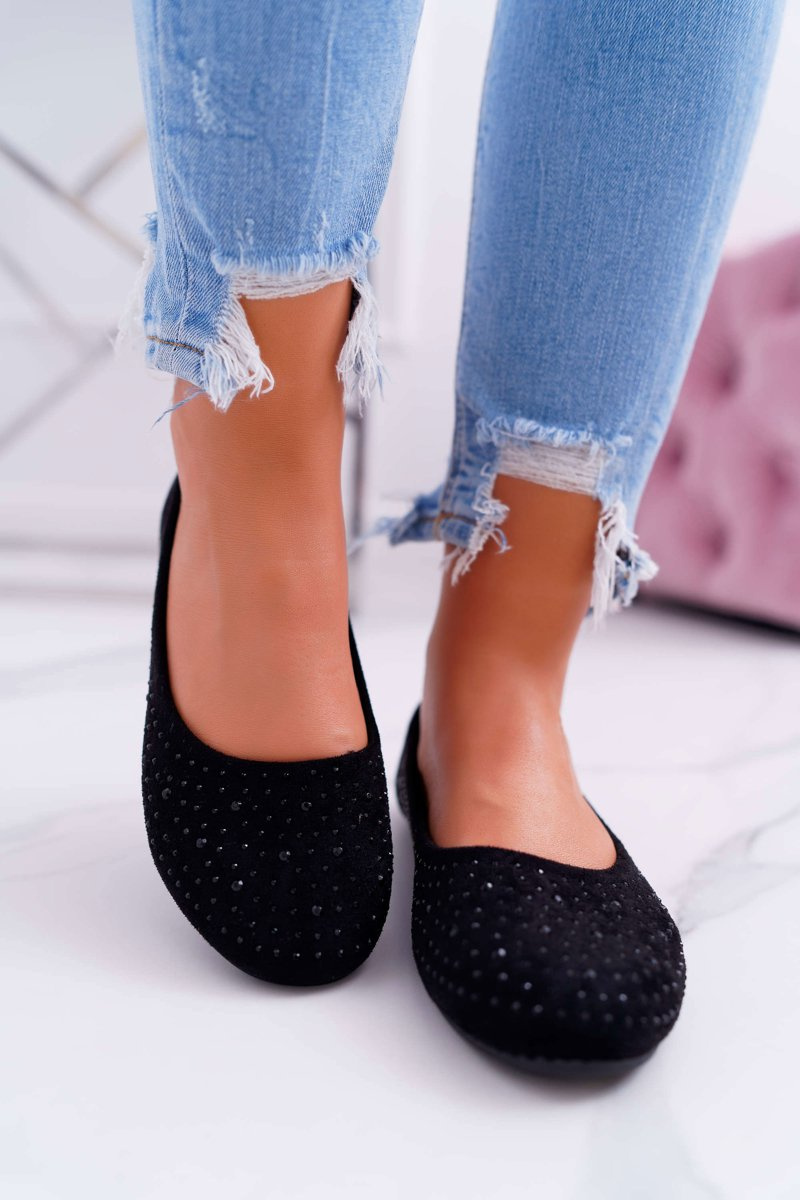 Baleriny Damskie Z Cyrkoniami Zamszowe Czarne Lora