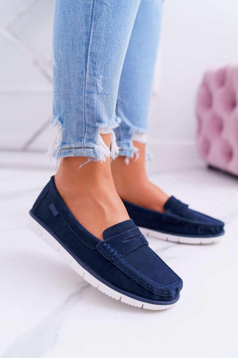 Mokasyny Damskie Skóra Zamszowa Granatowe Lauren