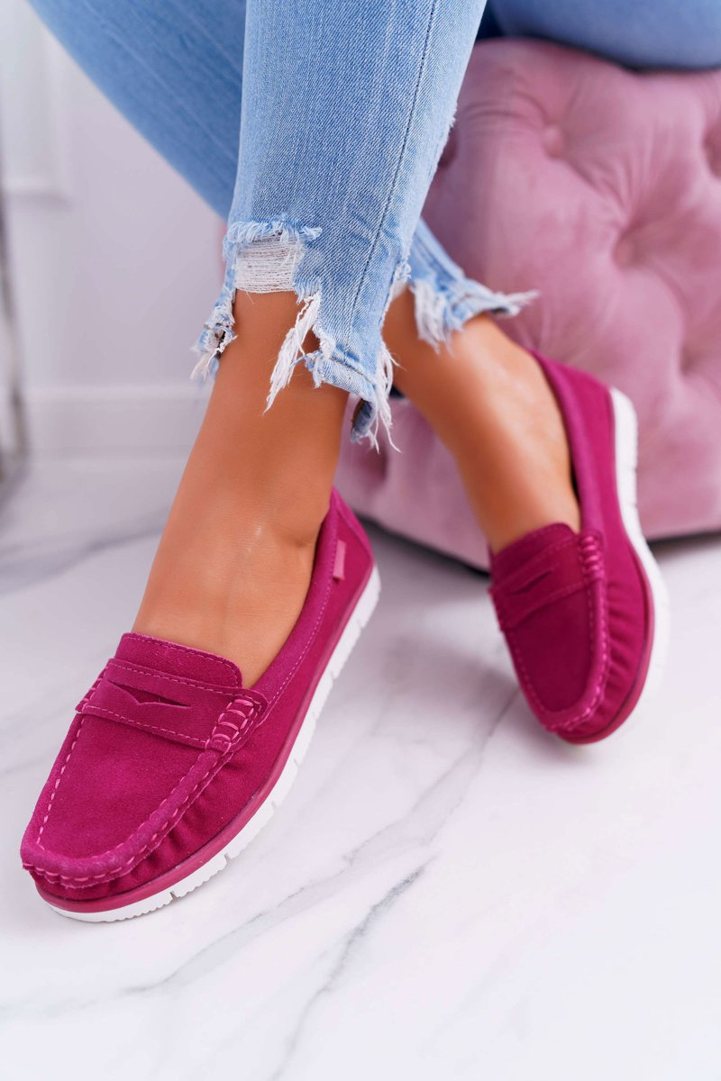Mokasyny Damskie Skóra Zamszowa Fuksja Lauren