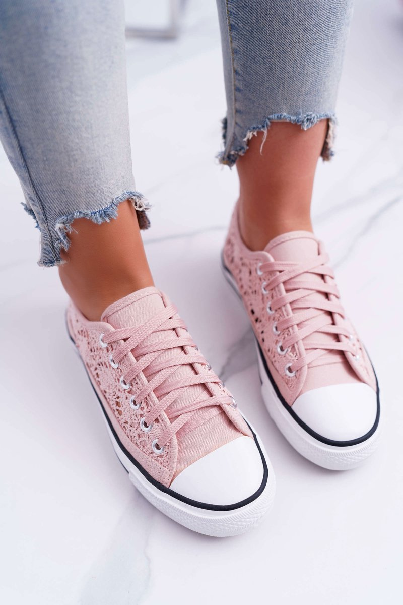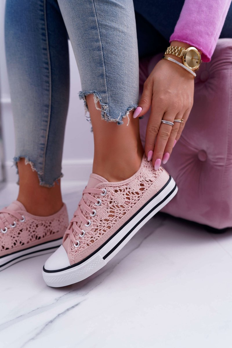 Trampki Damskie Niskie Koronkowe Różowe Veroli