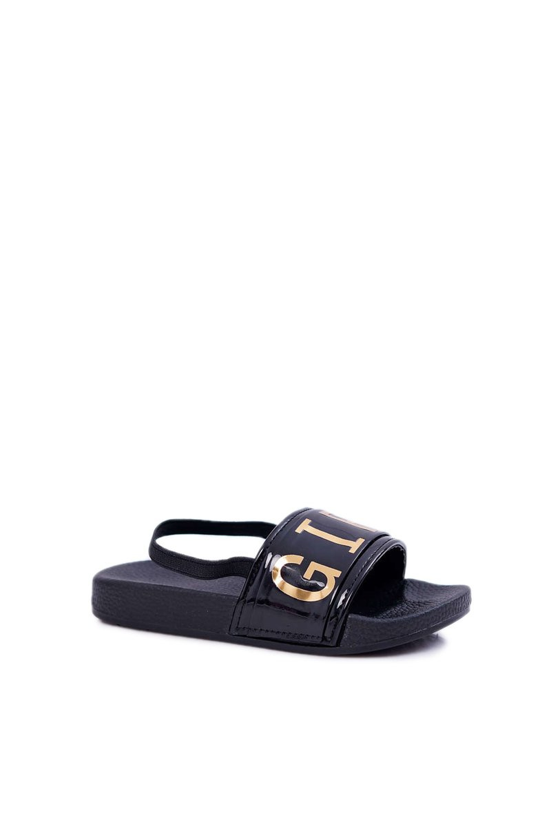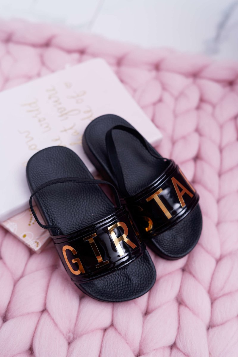 Dziecięce Klapki Dziewczęce Złoty Napis Girl Star Czarne Bambi