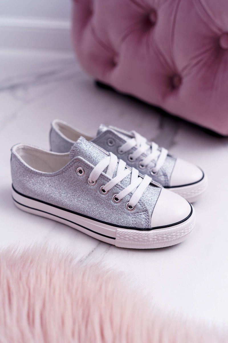 Dziecięce Brokatowe Trampki Srebrne Misty