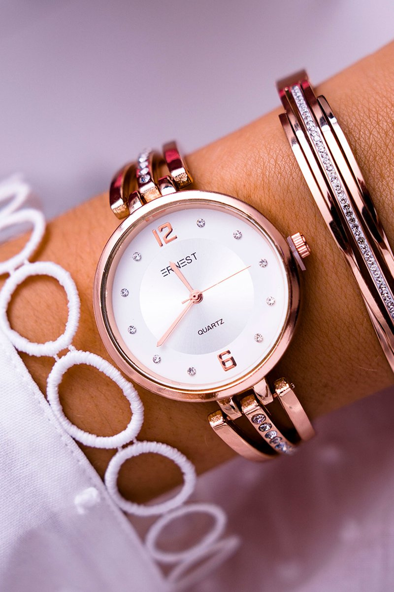 Damski Zegarek Ernest Cyrkonie Różowe Złoto Alendi